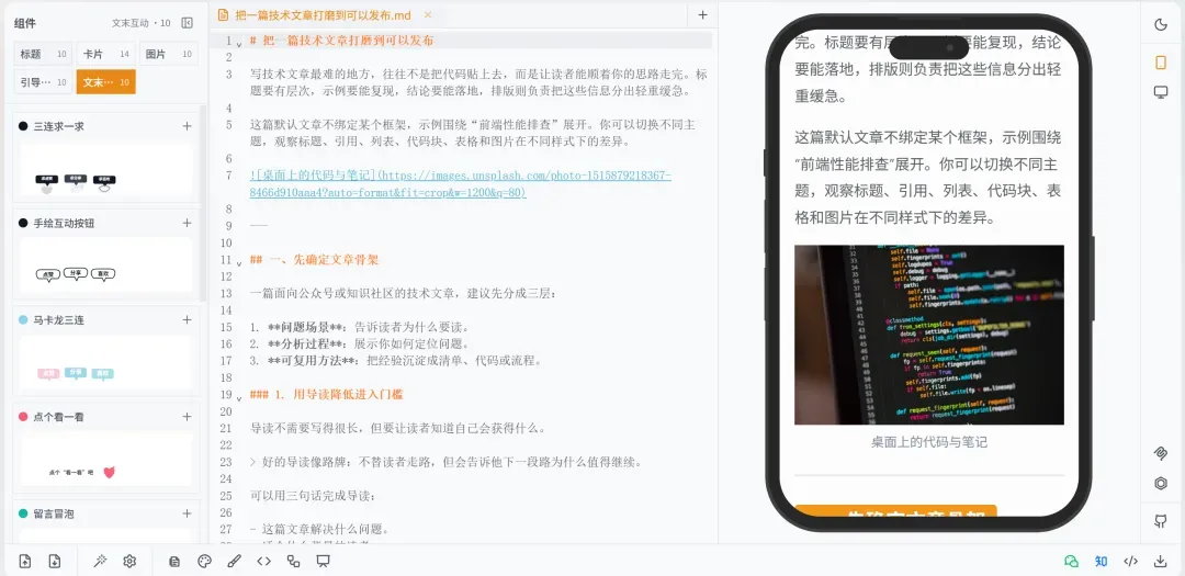 这些能力的核心目标其实很明确: 不是把 Markdown “展示出来”,而是把它真正变成可发布内容。