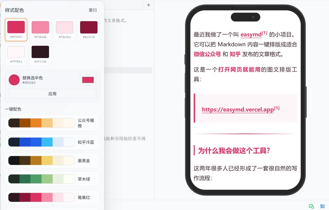 所以我一直想做一个更顺手的工具:既保留 Markdown 写作的效率,又能更自然地完成公众号/知乎排版。