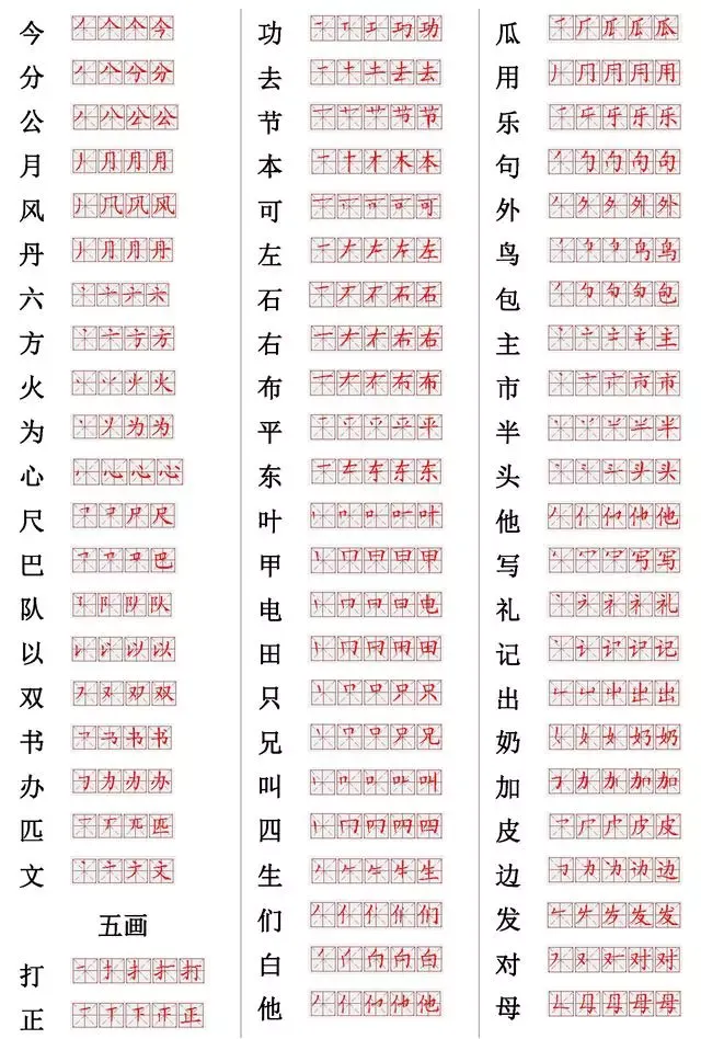 小学常用560个汉字笔画笔顺表(可下载保存)