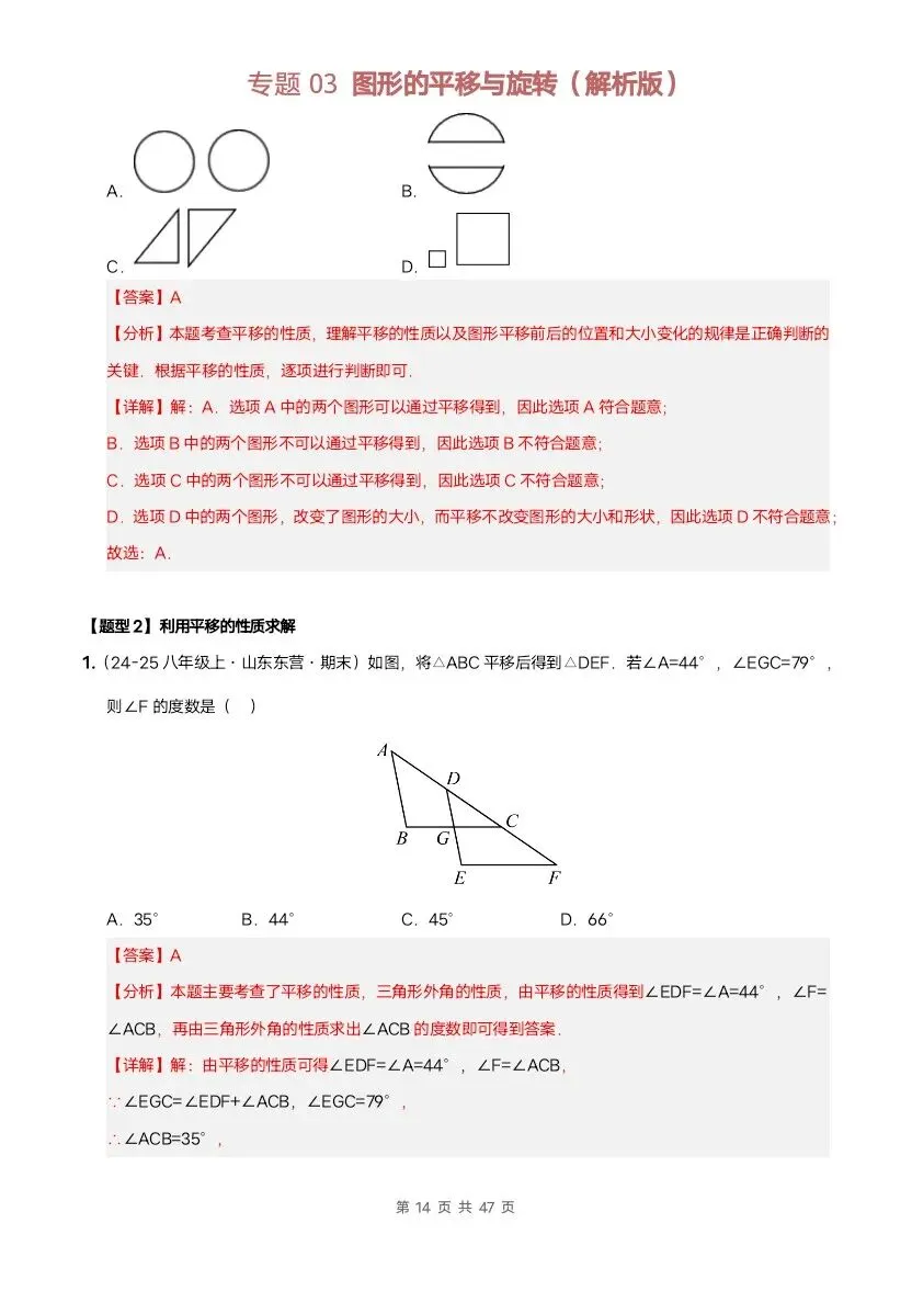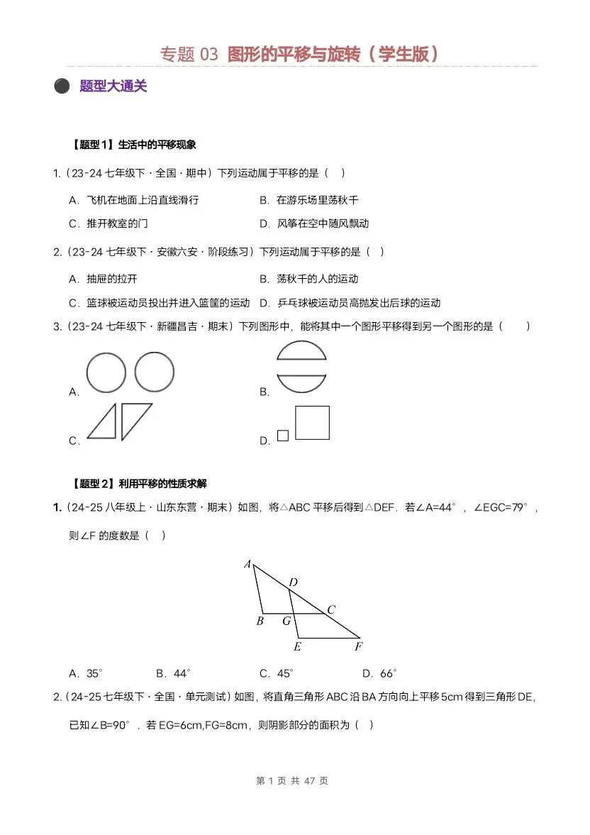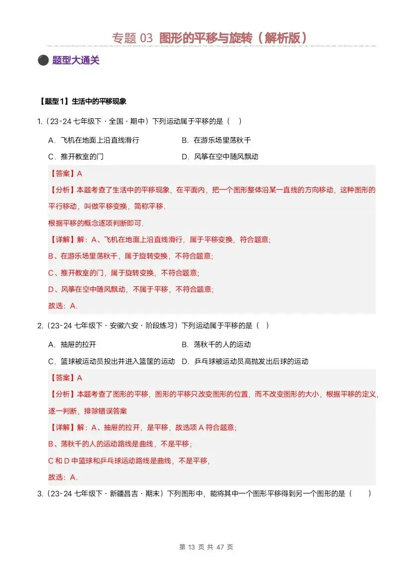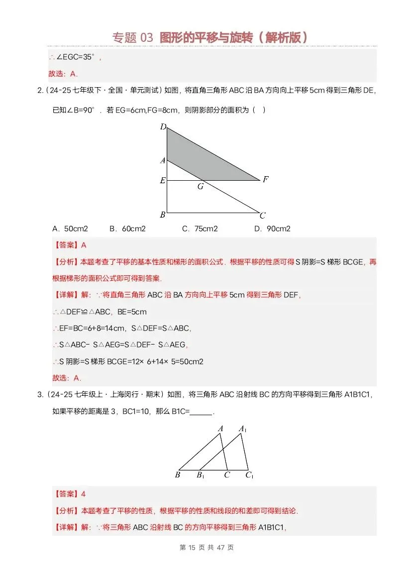 今日分享26春八年级下册北师版专题·图形的平移与旋转(含答案)完整电子版可打印!所有资料均为高清电子版,排版规整适配打印,不用费心整理,直接打印就能用。精准击破学习难点,帮孩子夯实基础、吃透考点,稳步提升学习效率!