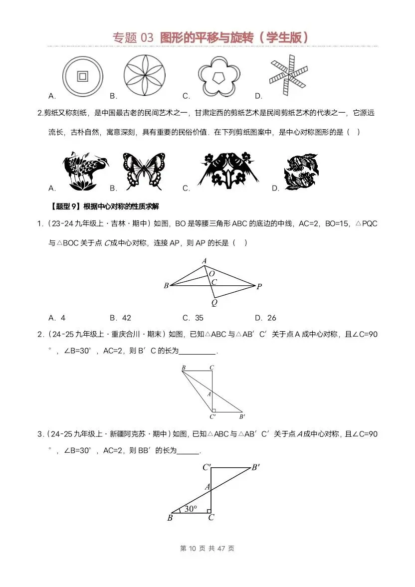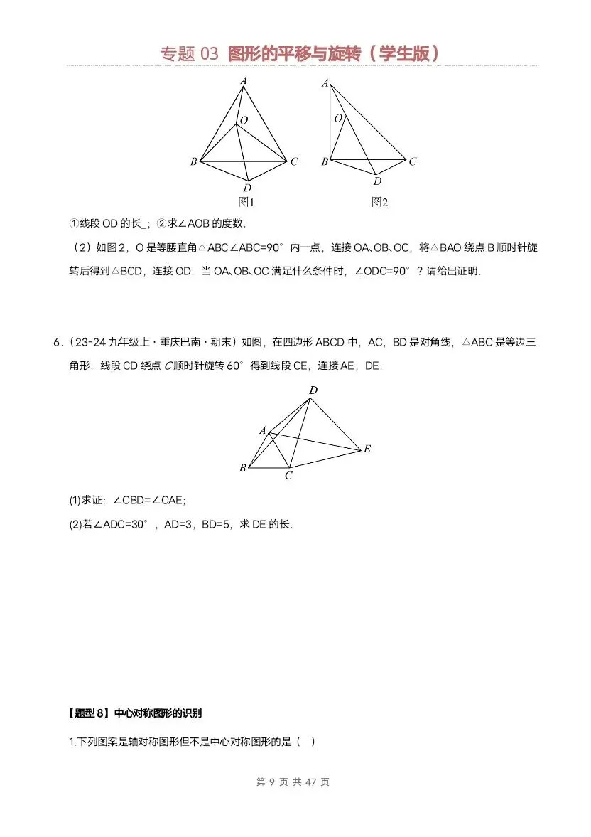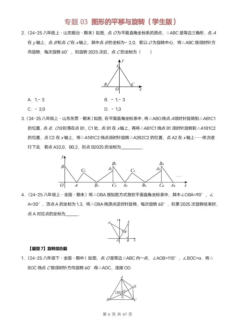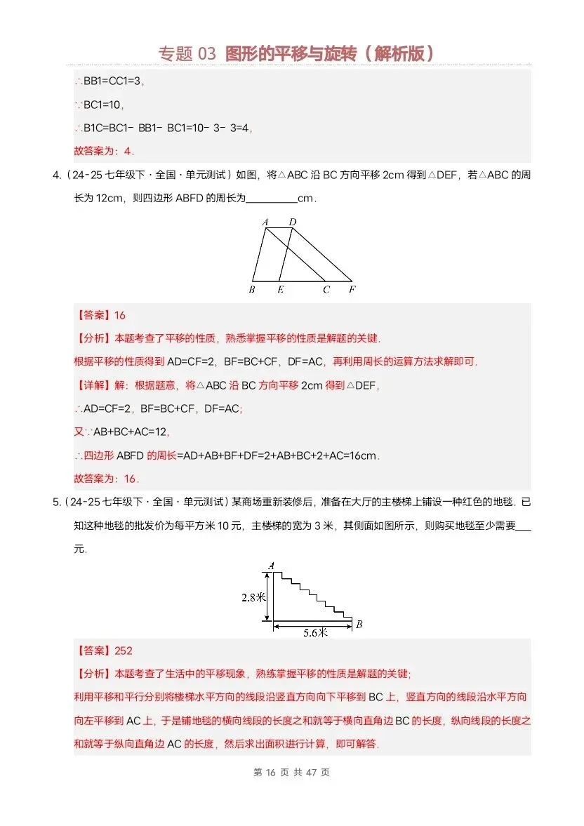 今日分享26春八年级下册北师版专题·图形的平移与旋转(含答案)完整电子版可打印!所有资料均为高清电子版,排版规整适配打印,不用费心整理,直接打印就能用。精准击破学习难点,帮孩子夯实基础、吃透考点,稳步提升学习效率!