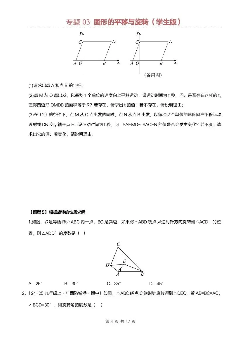 26春八年级下册北师版专题·图形的平移与旋转(含答案)完整电子版可打印