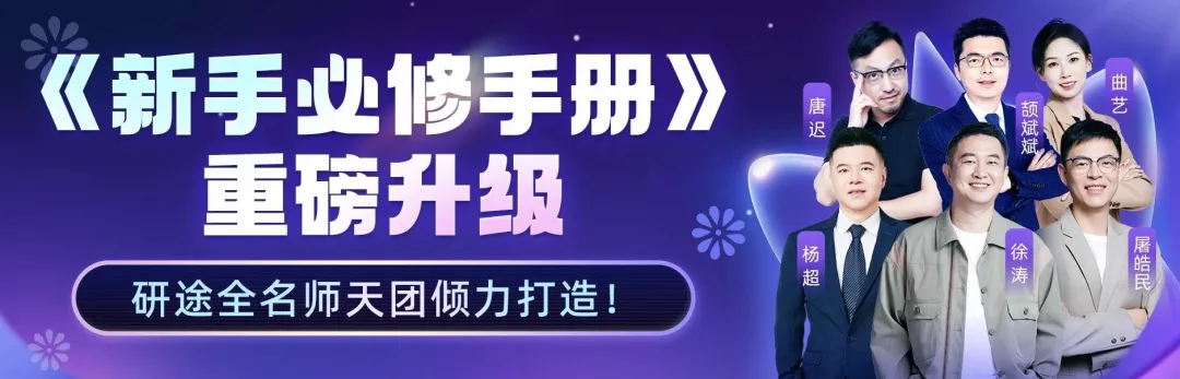 如果你是大一/大二的学生,除了以上权益,还能免费领取研途全明星名师打造的4本《新手必修手册》以及配套95节名师录播课,限时限量!(打开小程序👉专属顾问领取!)