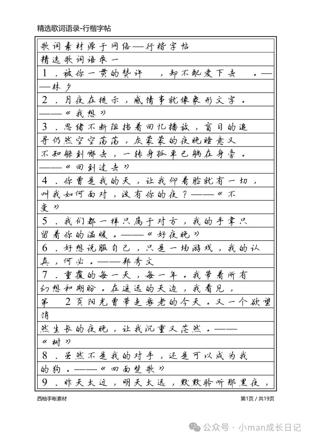 这次为大家整理了一份超全字帖合集——从楷书基础笔画到行楷进阶,从古风诗词到现代语录,涵盖各种风格与难度!