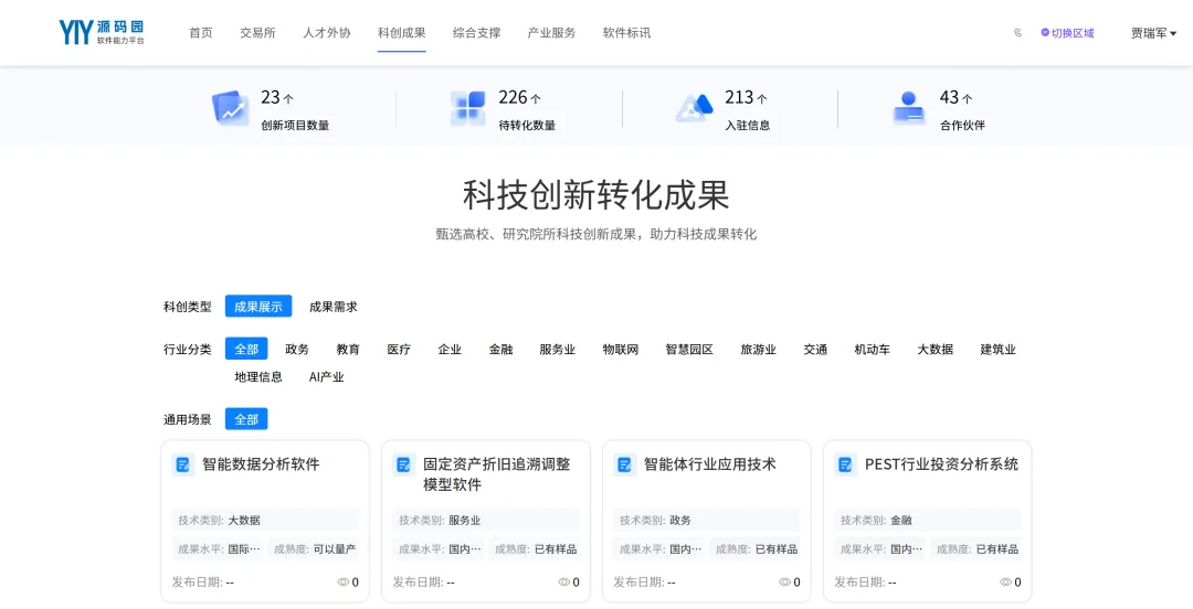 平台支持科研机构、专家个人、联合团队发布各类成果,覆盖政务、能源、教育、金融、物联网、文旅等全行业场景: