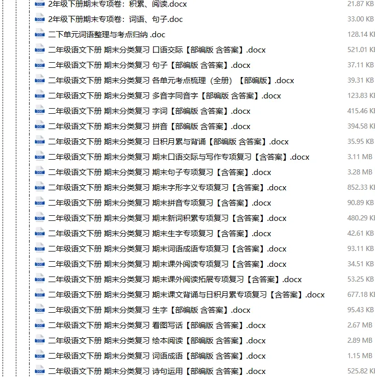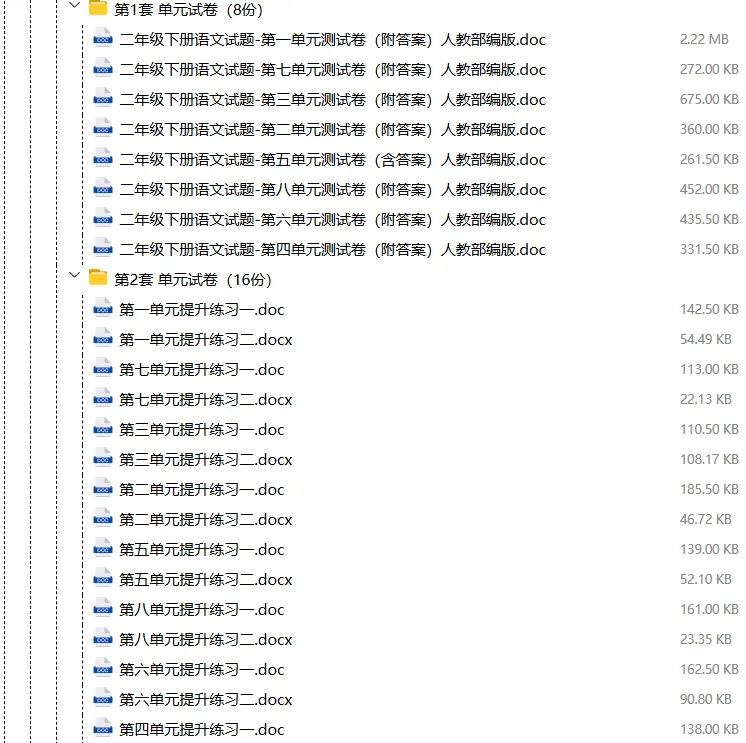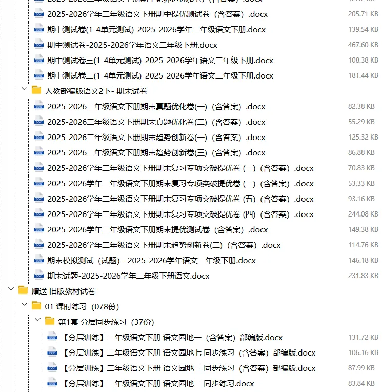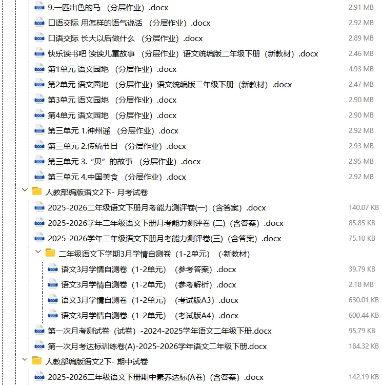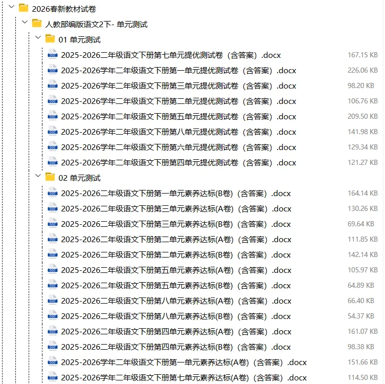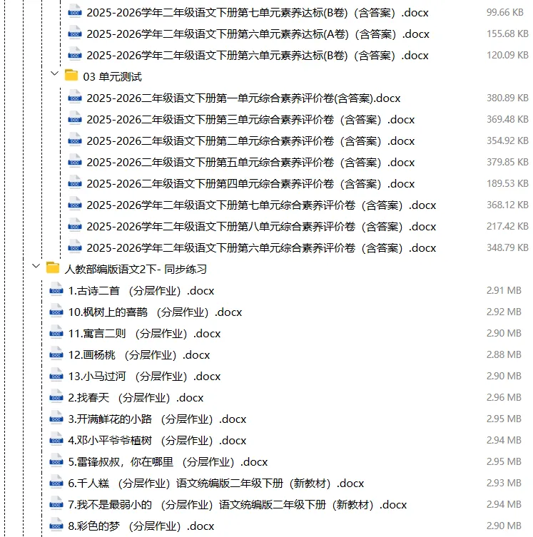 【电子版】2026春人教部编版小学二年级语文下册 (课时练习+单元测试+月考试卷+期中试卷+期末试卷)全套下载 可编辑打印