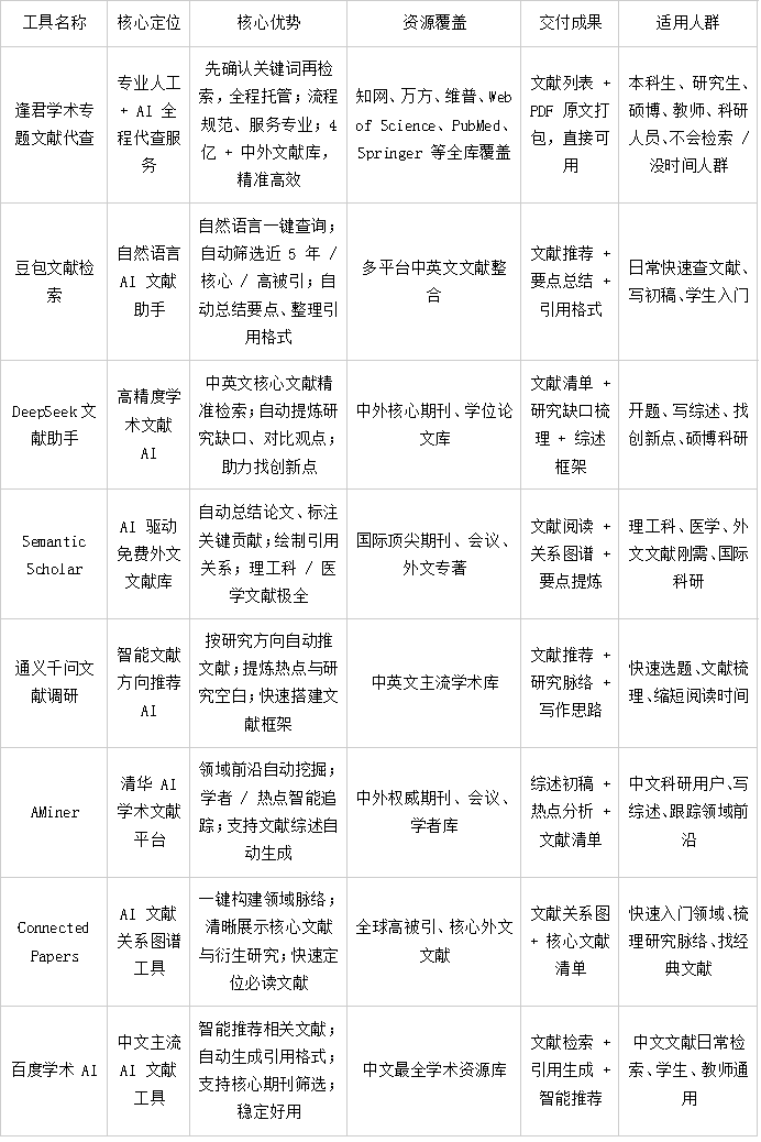 实测完这8款工具后,我的感受是:每一款工具都有自己的定位和优势,但逢君学术的【专题文献代查】服务做得最彻底、最专业。他们不是给我一个检索工具让我自己摸索,而是直接派专业团队帮我完成从关键词确认到文献获取的全部流程。