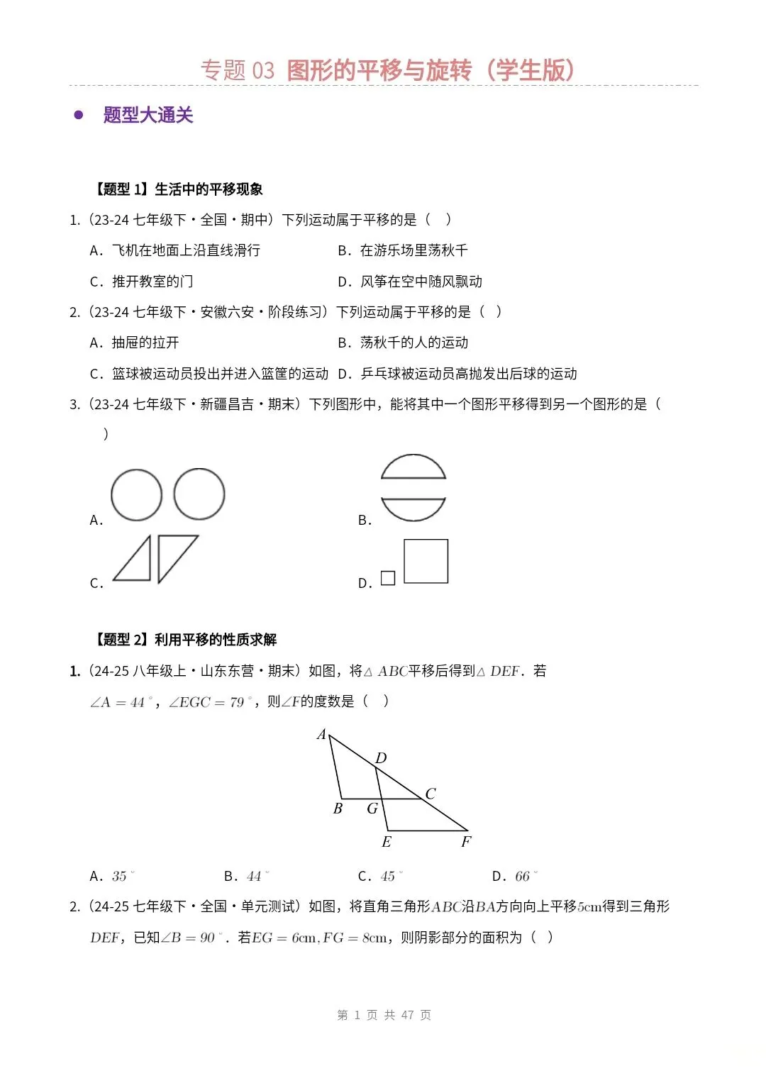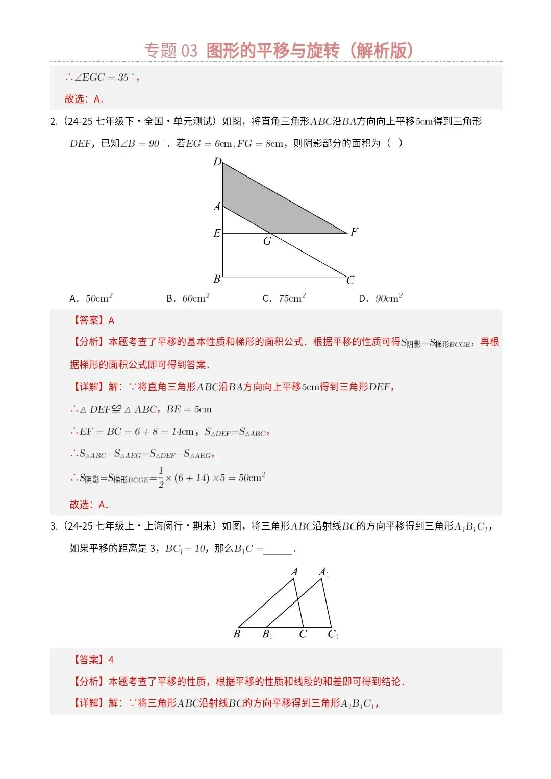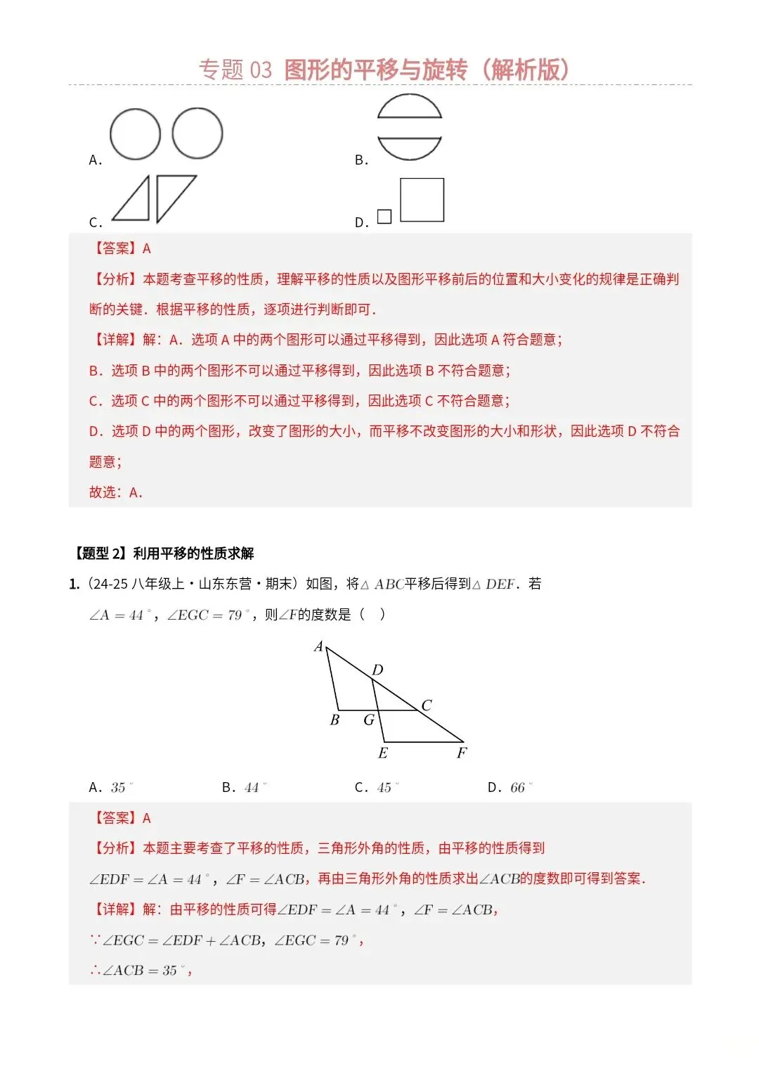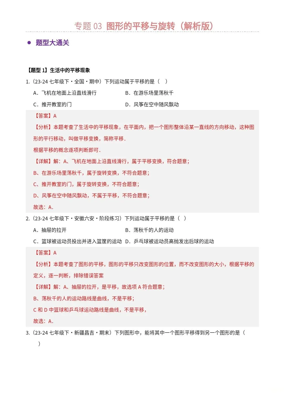 今日分享26新八年级下册数学北师版专题·图形的平移与旋转(含答案)完整电子版可打印!高清可打印,每日轻量练习,拒绝无效刷题,用系统化资料筑牢学科基础,让假期成为提升的黄金期,开学轻松领跑。