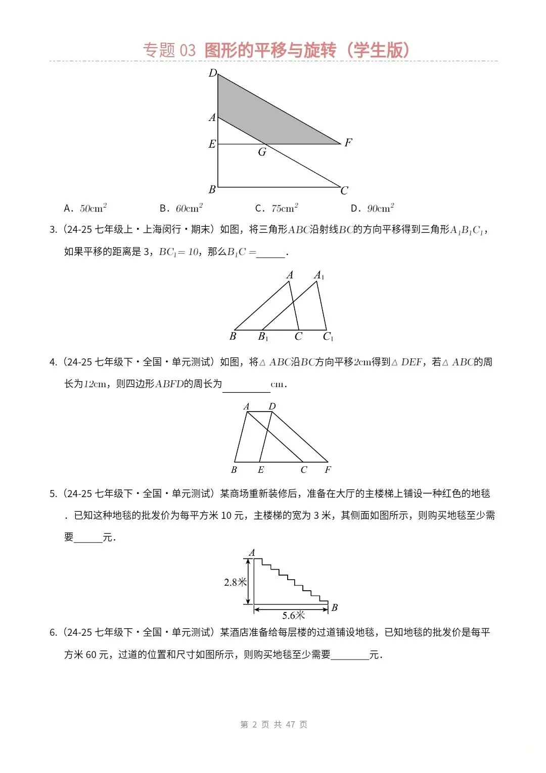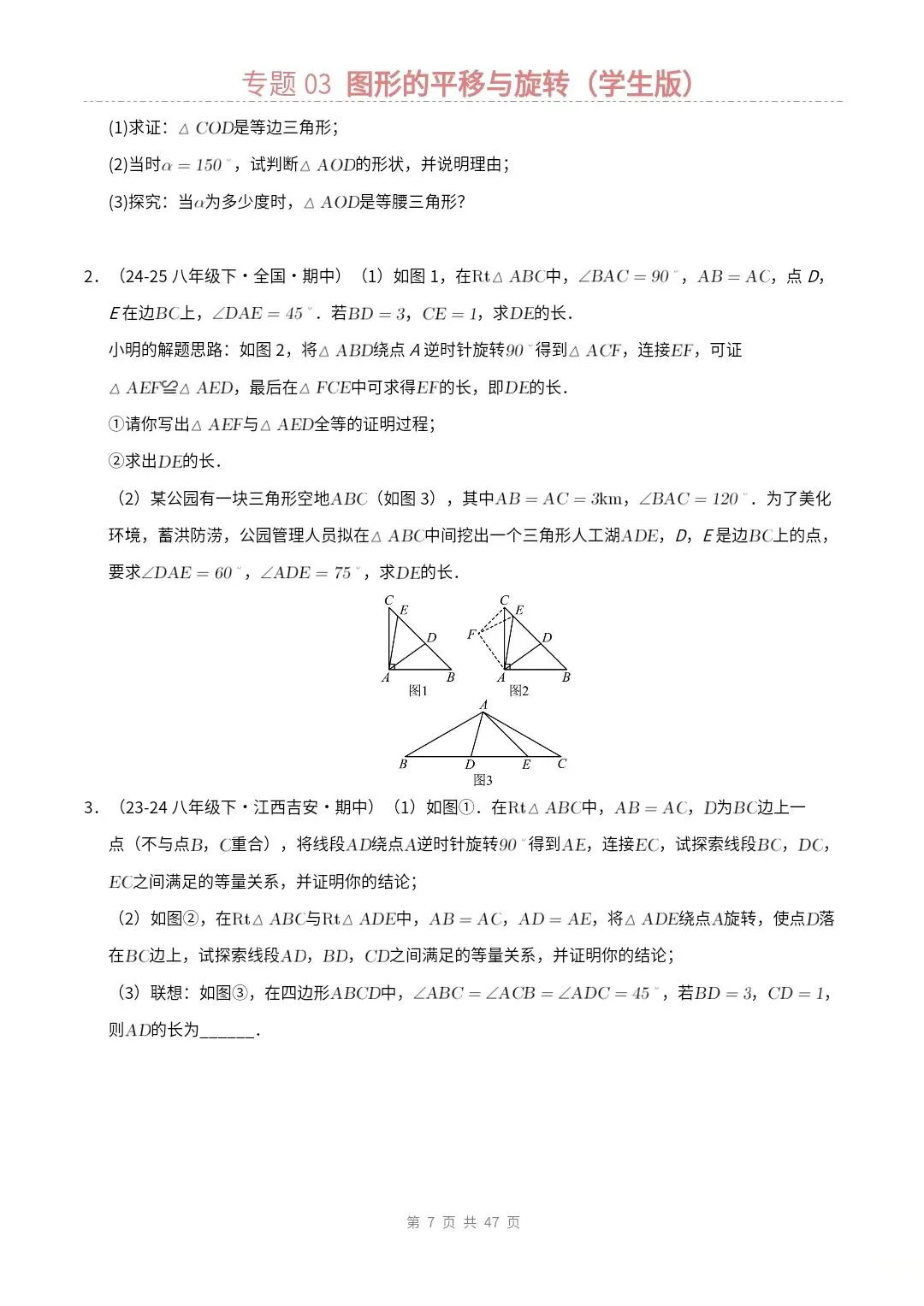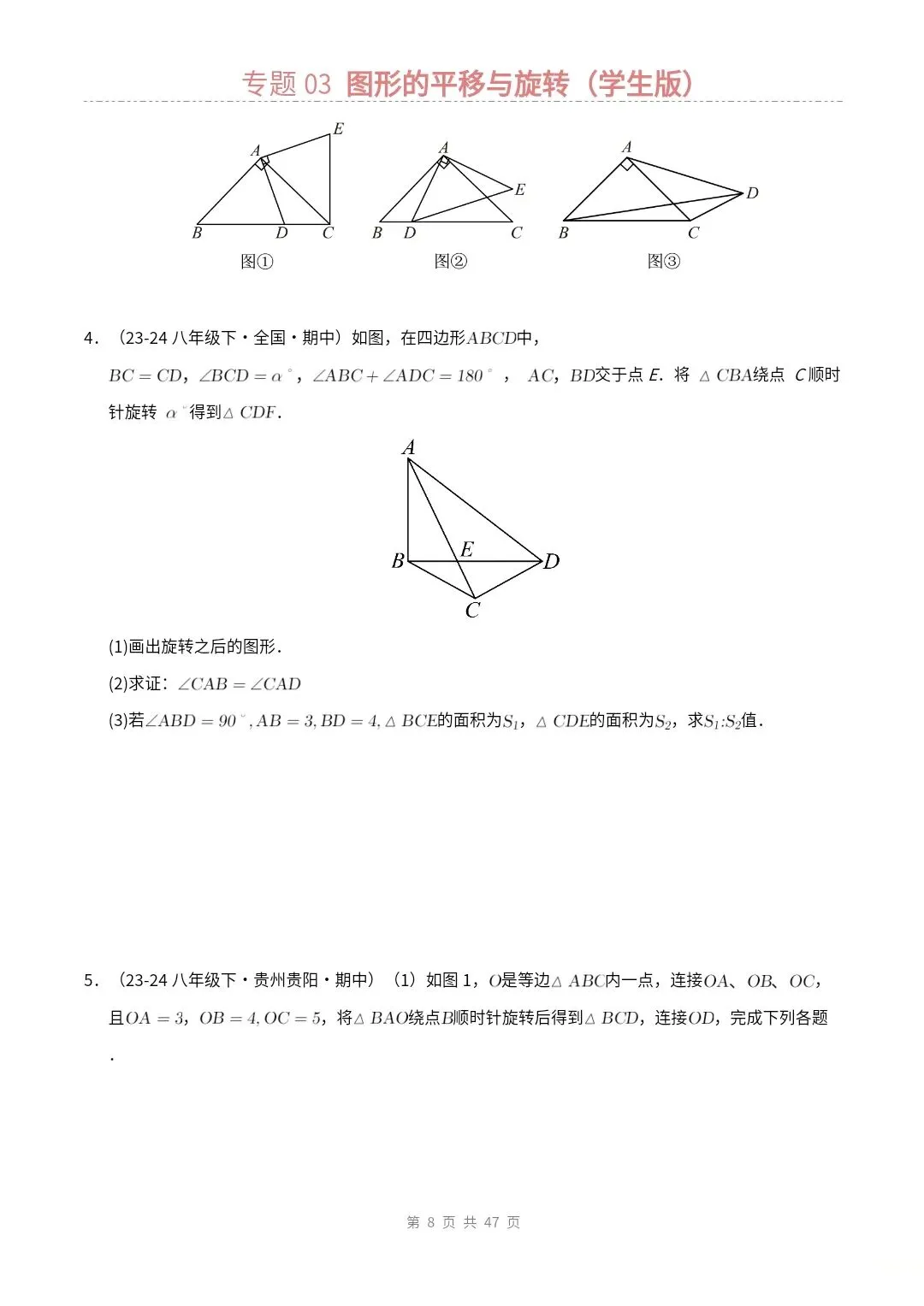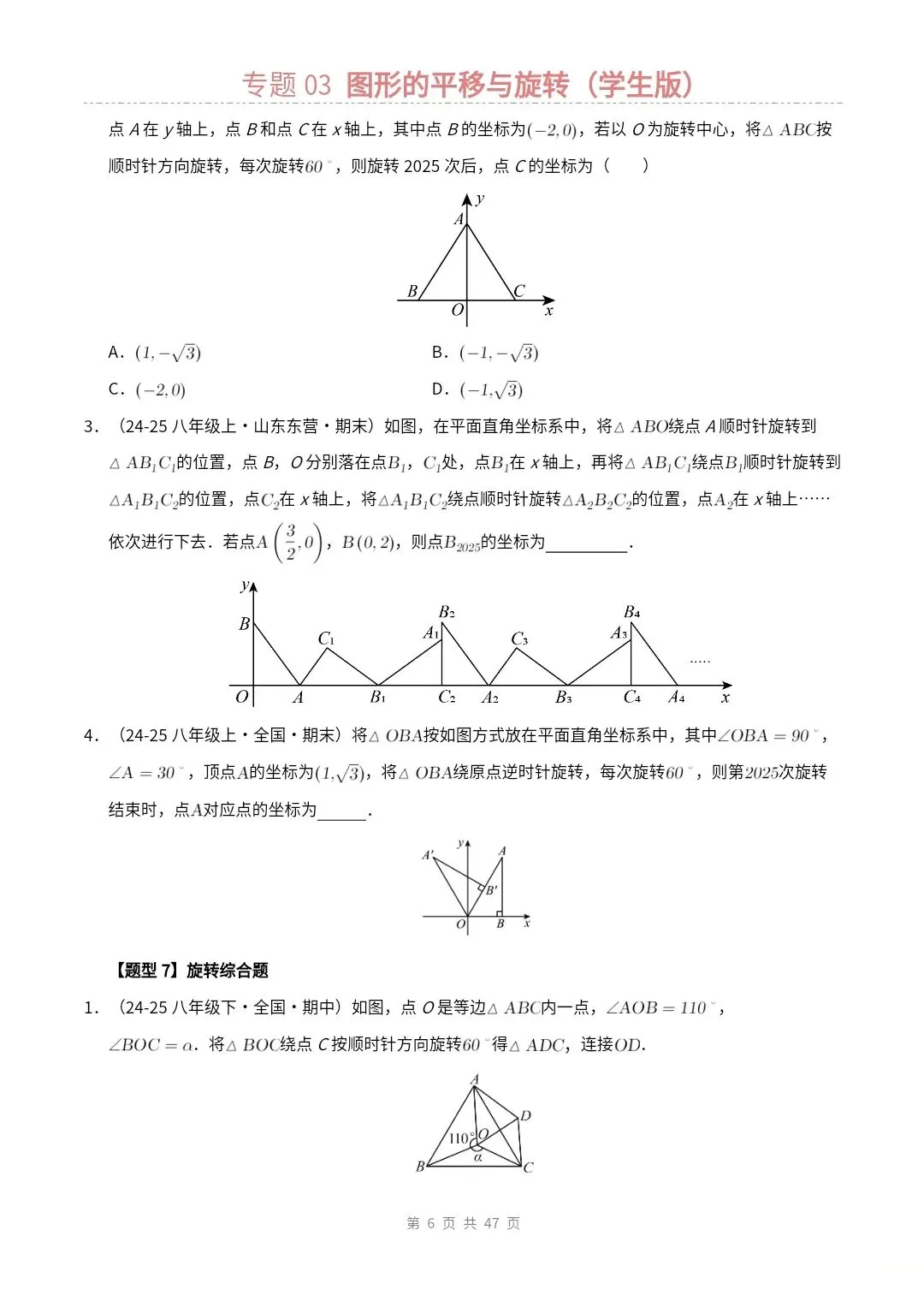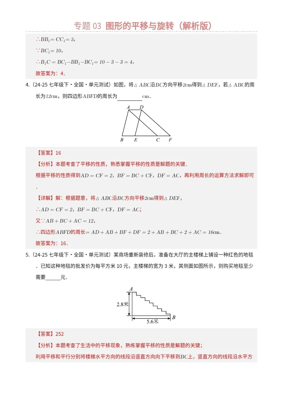 今日分享26新八年级下册数学北师版专题·图形的平移与旋转(含答案)完整电子版可打印!高清可打印,每日轻量练习,拒绝无效刷题,用系统化资料筑牢学科基础,让假期成为提升的黄金期,开学轻松领跑。