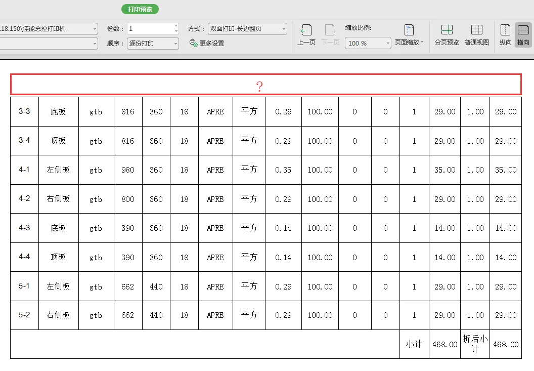 ■ 重新点开“打印预览”,可以看到所有的内容都在一页纸上了,但表格太小且整体缩在纸张左上角,不美观;