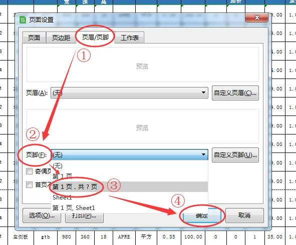 ■接下来再设置一下页码,点击“页眉页脚”,在“页脚”中选择“第1页,共?页”,选好后点击“确定”;
