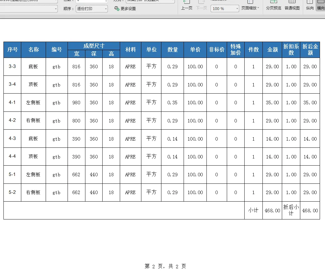 ■ 点击“打印预览”,可以看到这张表格被分成两页,而且第二页内容很少,也容易造成纸张浪费。
