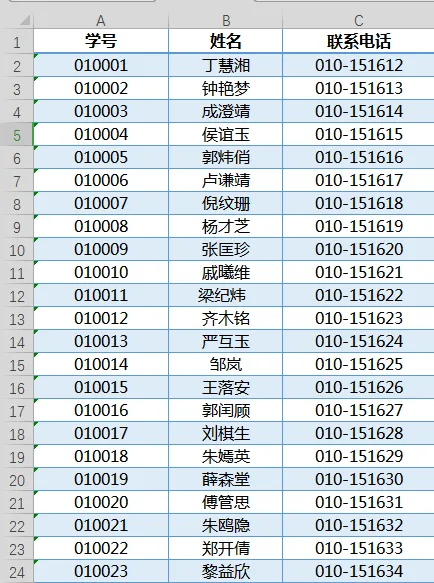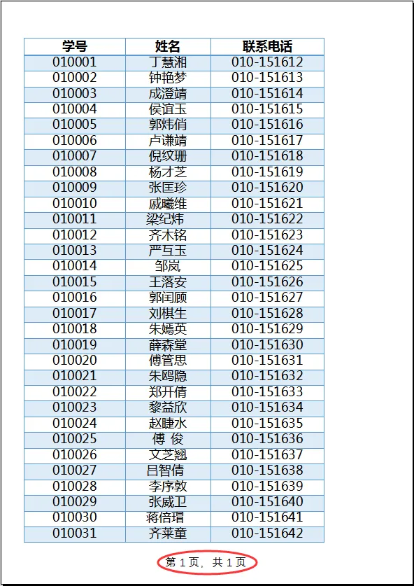 ■ 以这张表格举例,现在需要打印一份学生联系方式表。