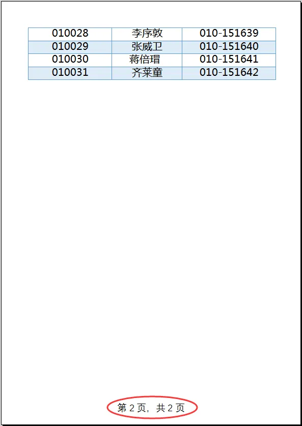 ■此时再打印预览看一下,每一页就都显示有标题行了,页码也都设置好了。