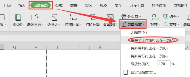 ■ 我们可以进行一下调整,点击“页面缩放”,选择“自定义缩放”。