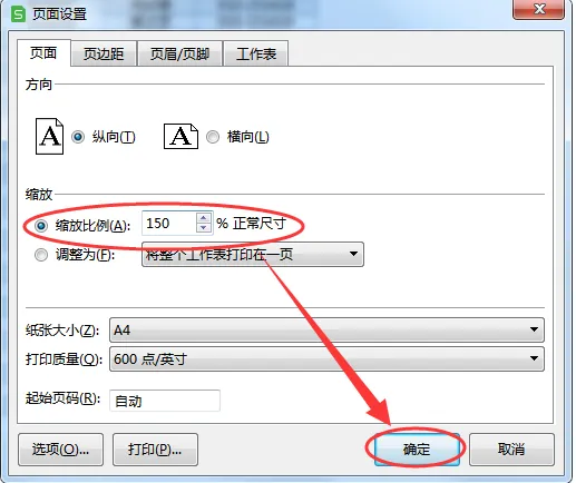■ 将“缩放比例”修改为150%,点击“确定”。