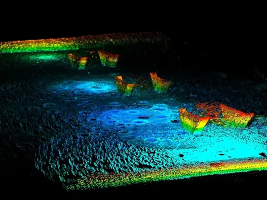 检测效果:可以精确获取桥墩的三维点云模型,分辨率达到厘米级别,能够发现表面裂缝、混凝土剥落、钢筋外露等缺陷,同时可以精确测量桥墩的几何尺寸和形变量。