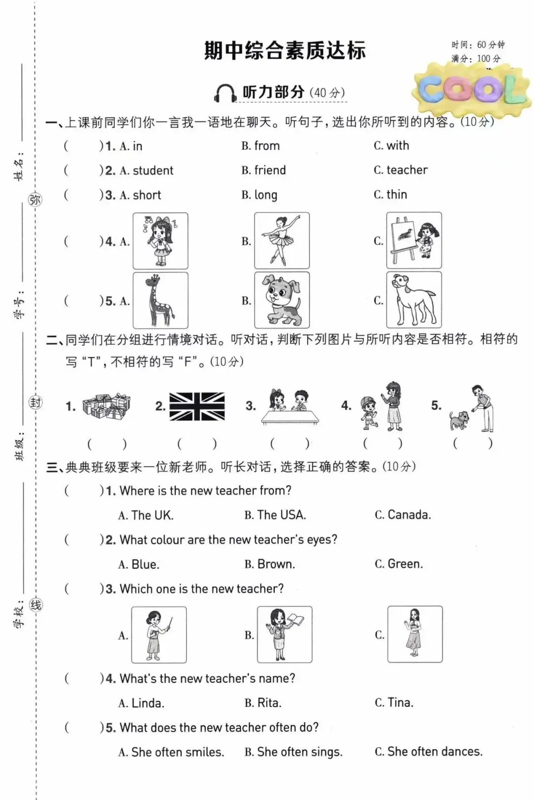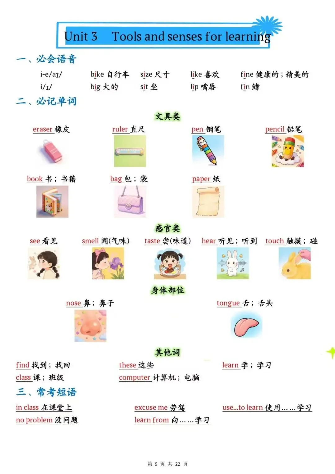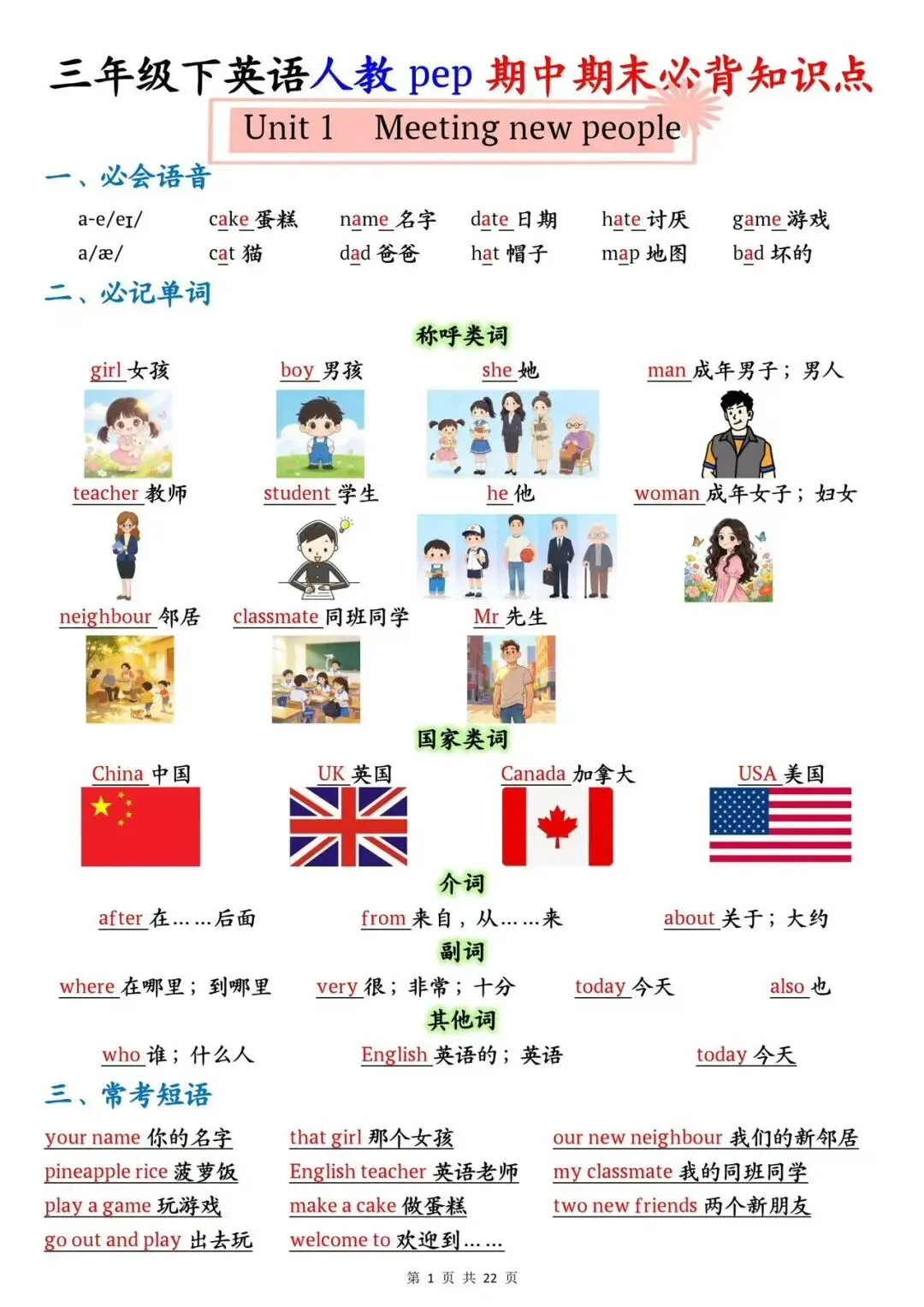 26年新版三年级下册人教PEP版英语《1-6单元知识点总结+期中测试卷3套附答案》,可打印