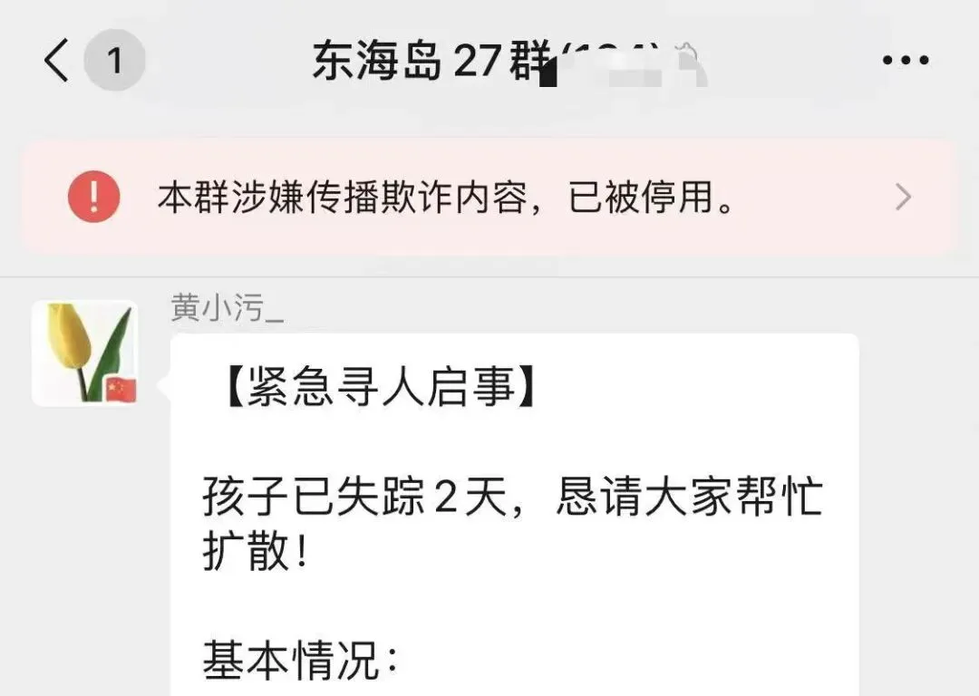 在此之前,我们本地交流群“东海岛27群”因转发这则真实的本地寻人启事,被系统误判为“涉嫌传播欺诈内容”,目前群聊已被停用,无法正常交流。此次转发的寻人信息,包含孩子基本情况、走失时间地点、家属及村干部联系电话,全程为纯公益寻人用途,无任何虚假、欺诈、违规内容,仅希望依托本地群的传播力量,让更多人留意线索,助力孩子早日回家。