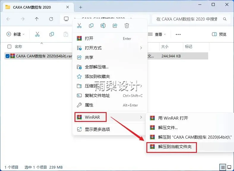 1.右键【下载的安装包】选择【解压当前文件夹】