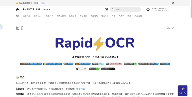 从运行一天的面板来看,小助手可以解决用户的大部分问题。当然,RapidOCR 官方文档也会持续更新维护。毕竟好的答案来自好的源头。