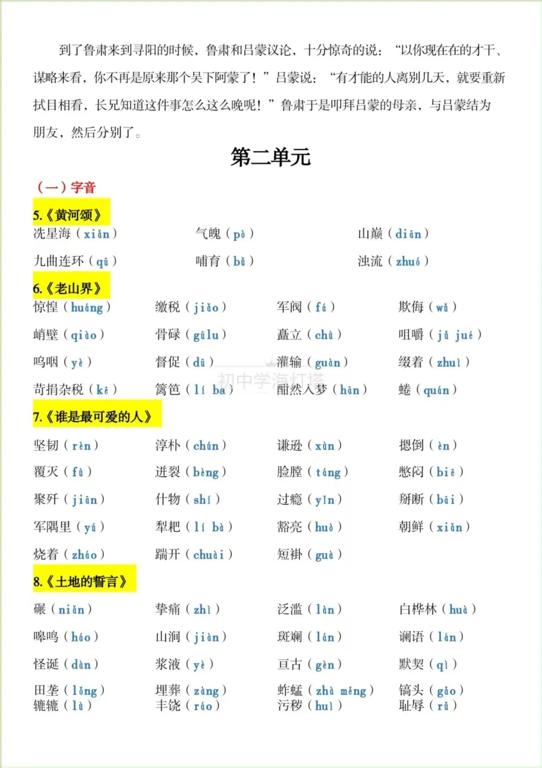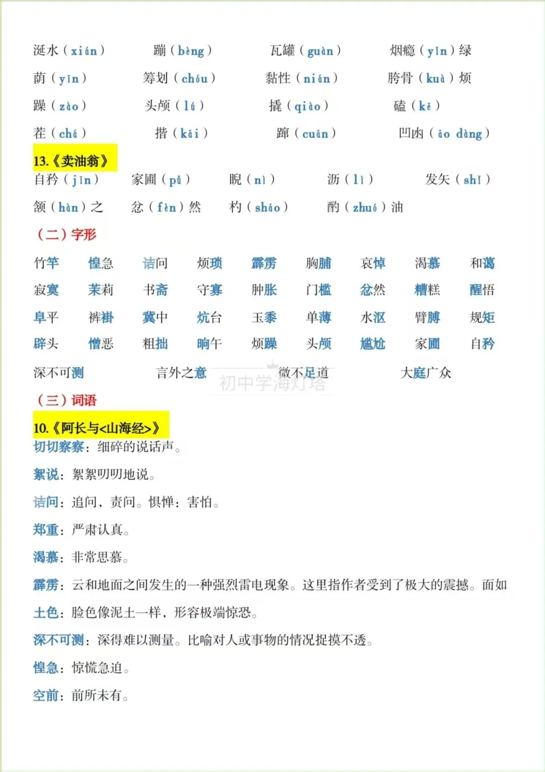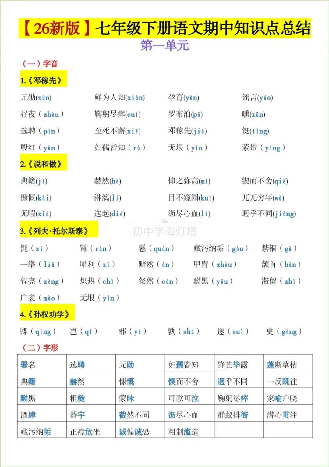 2026春新版【部编版】七年级下册〈语文〉期中复习《知识点总结》各课字音+字形+词语,可下载打印!