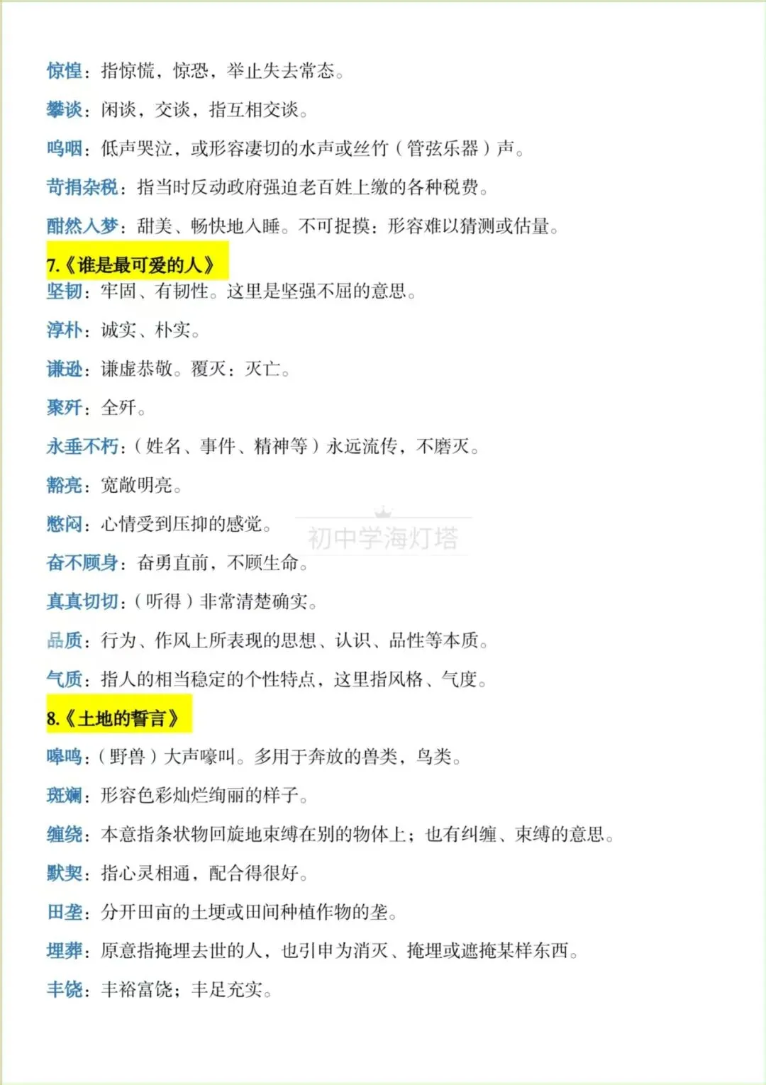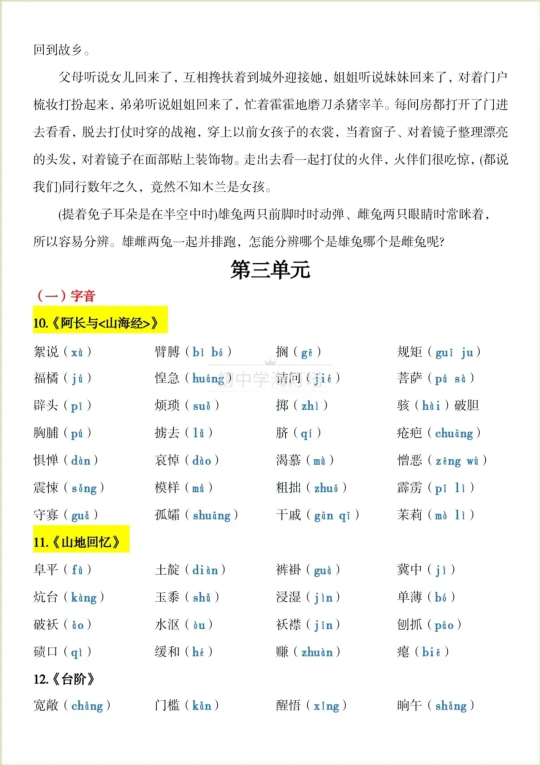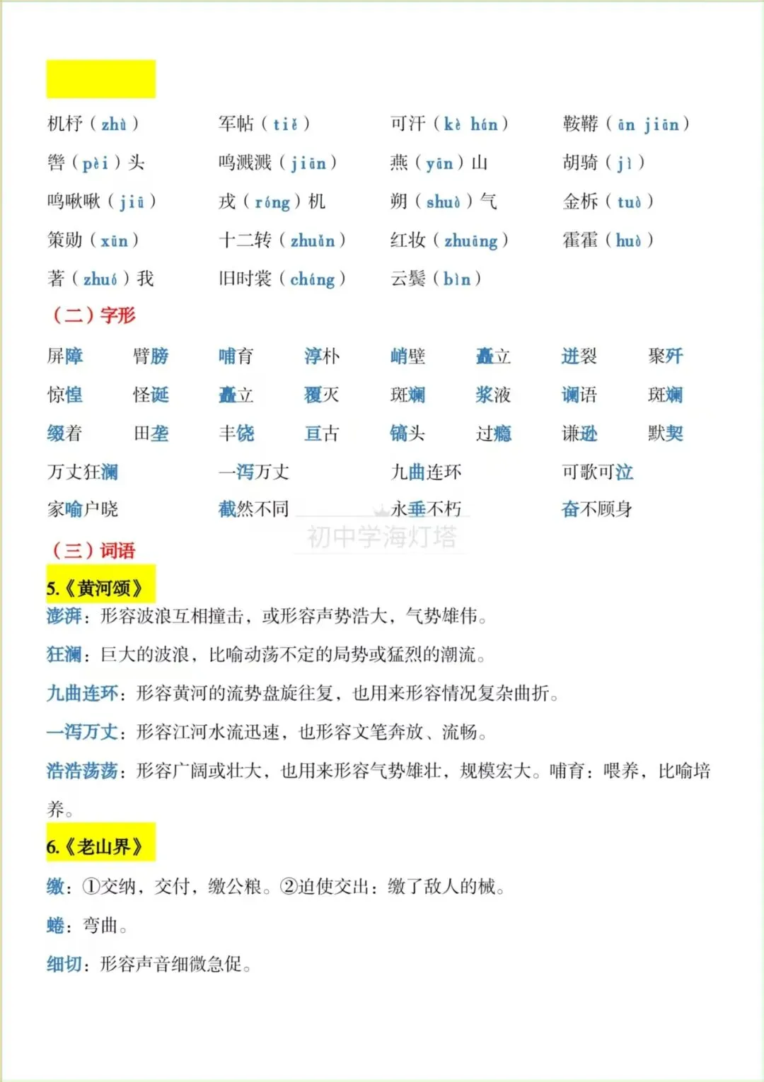 2026春新版【部编版】七年级下册〈语文〉期中复习《知识点总结》各课字音+字形+词语,可下载打印!