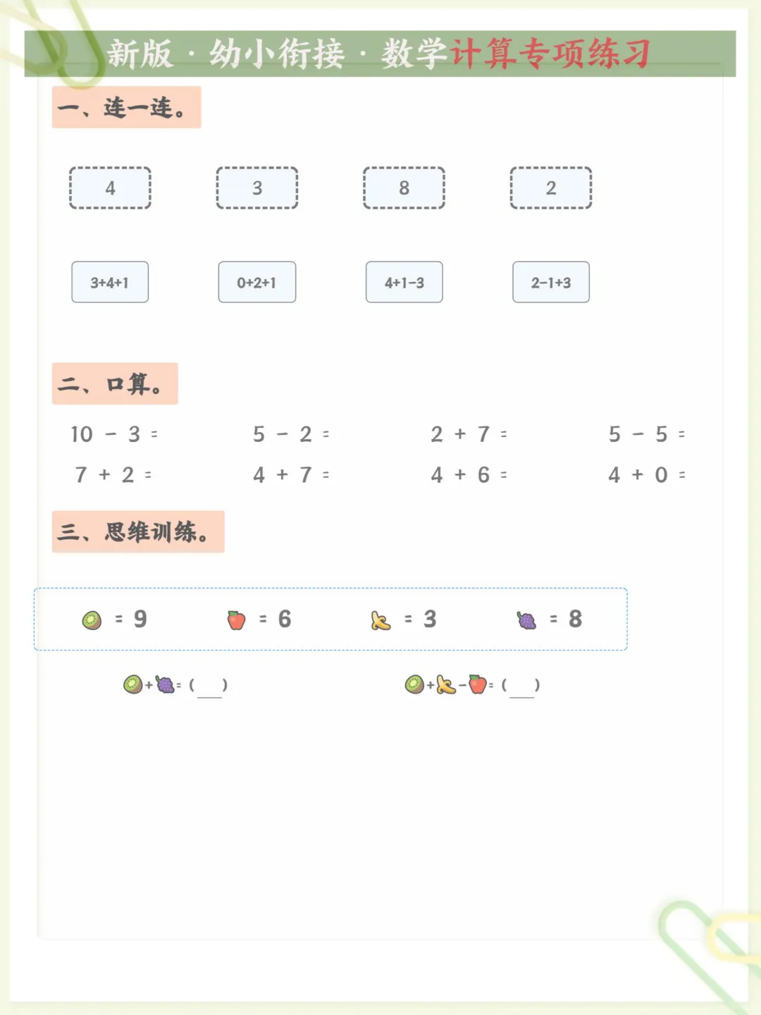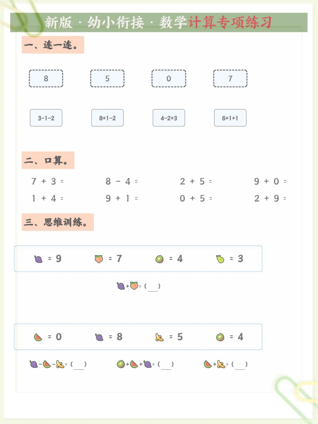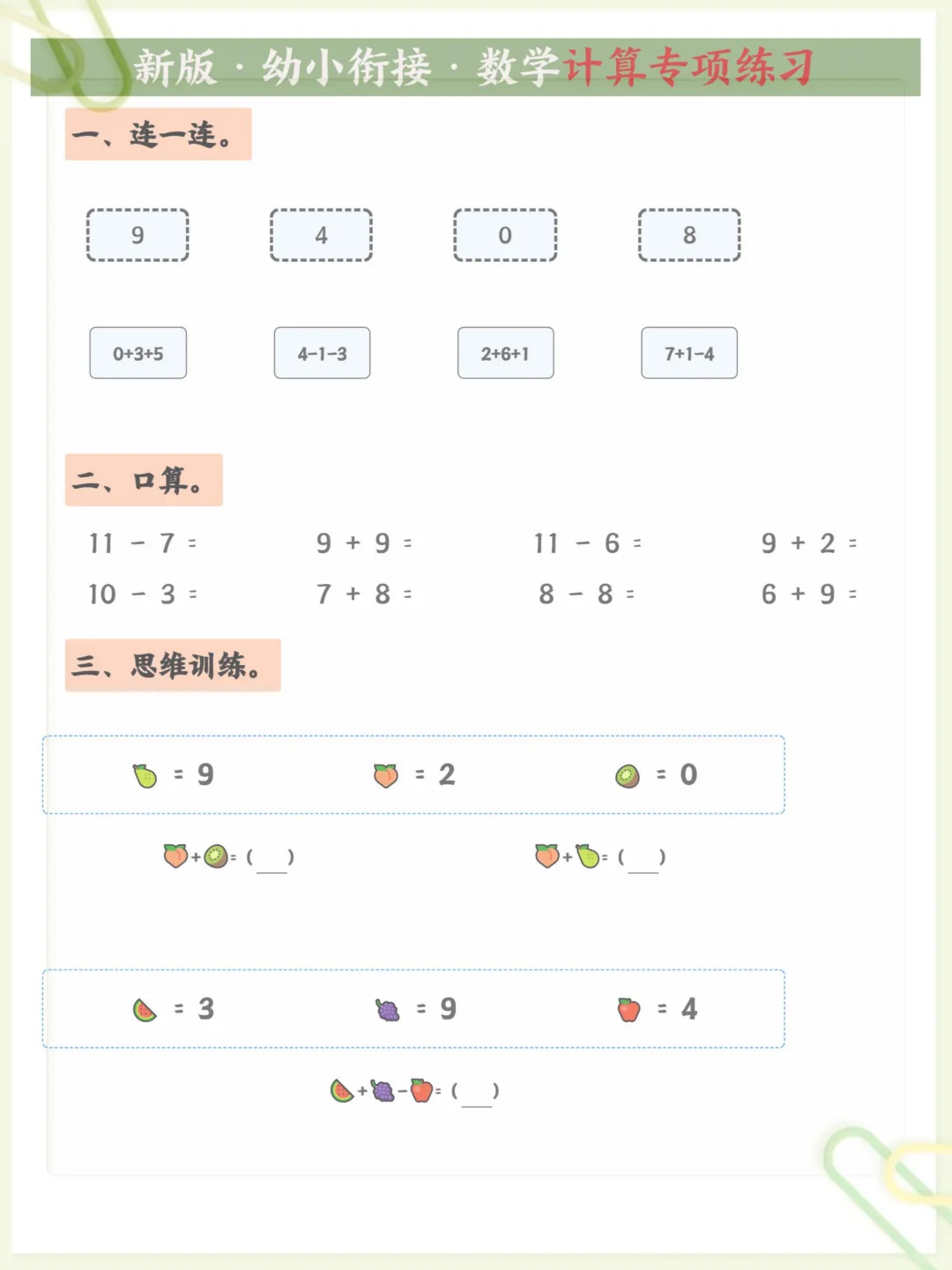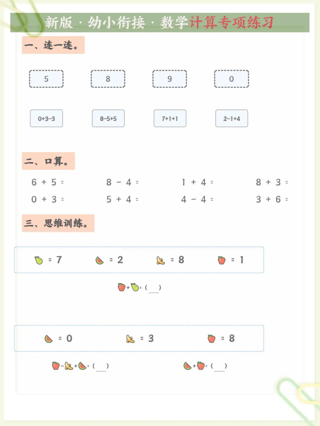 新版·幼小衔接·数学计算专项练习,电子版可打印