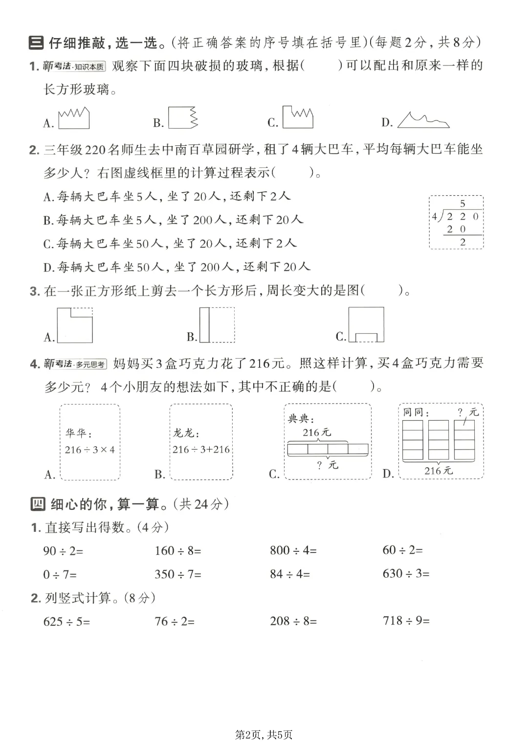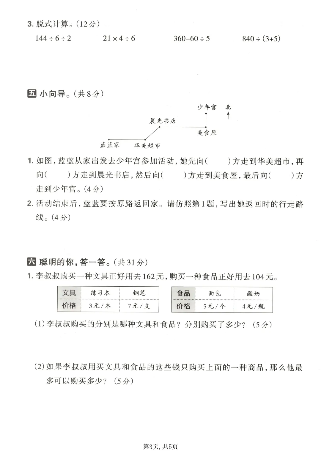 26年西师版《三年级下册数学期中质量检测卷,含答案》电子版可下载打印.