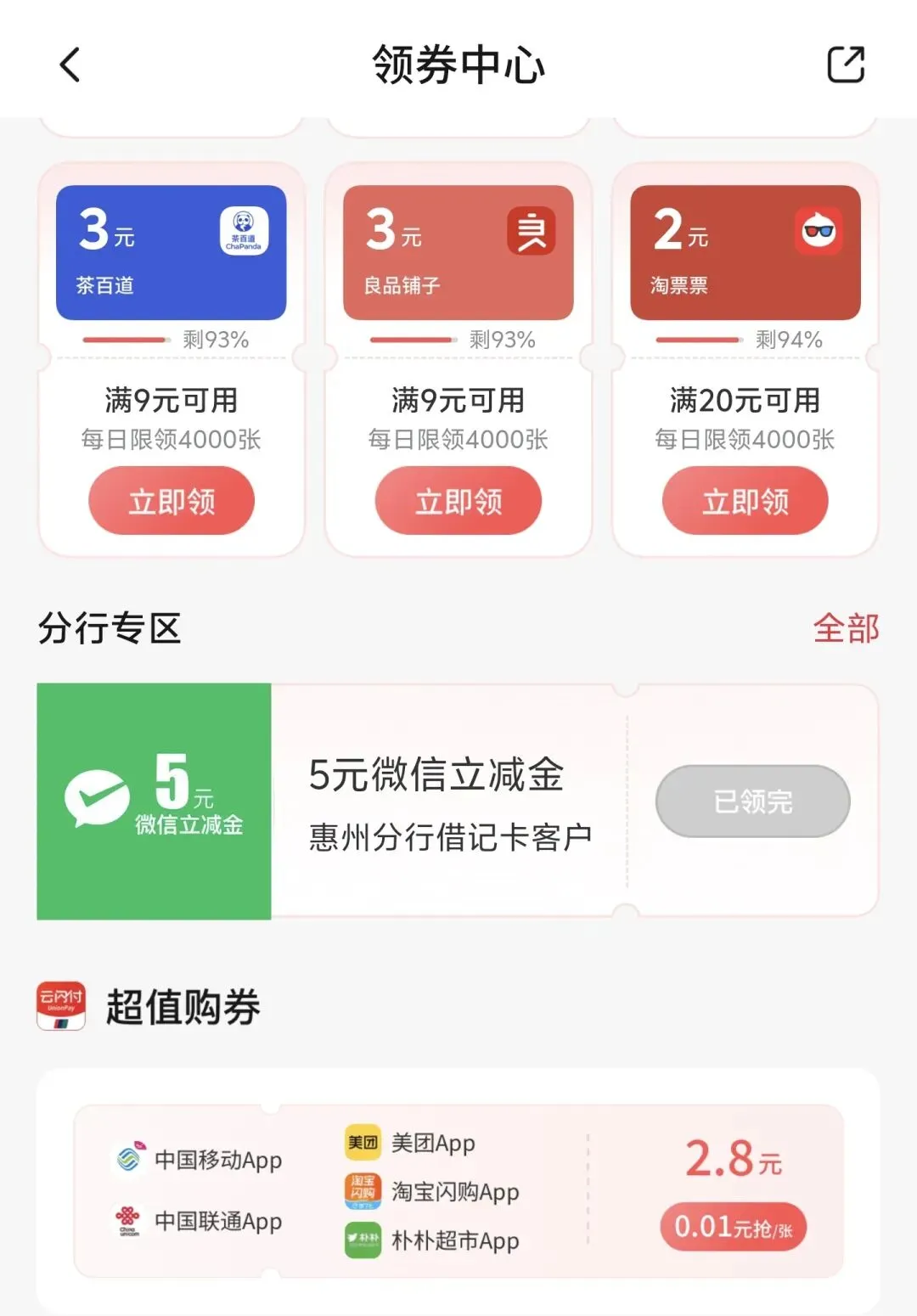 交行每月羊毛优惠2.8话费、买单APP周五权益