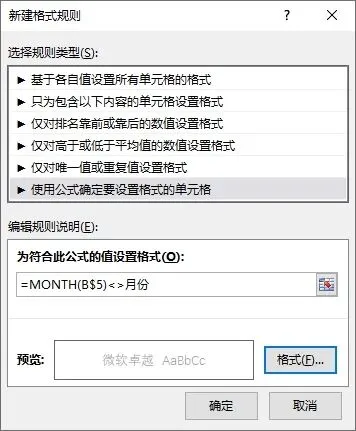 =MONTH(B5)<>月份 ' B5或B$5都可以