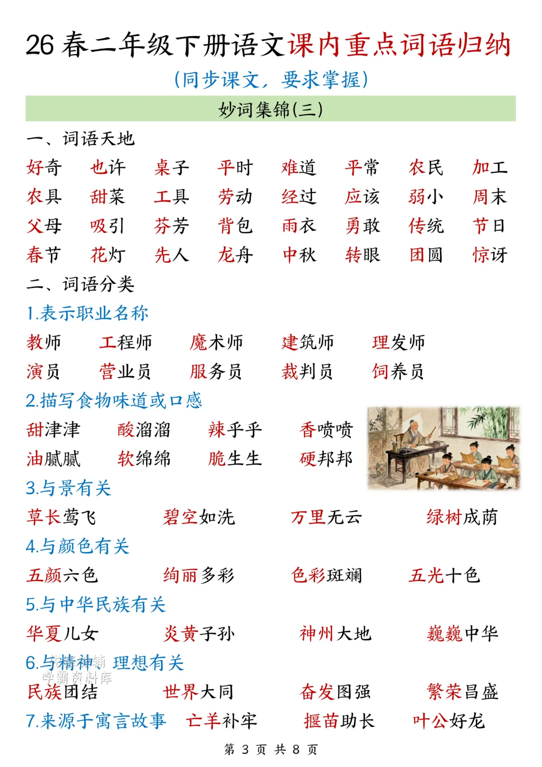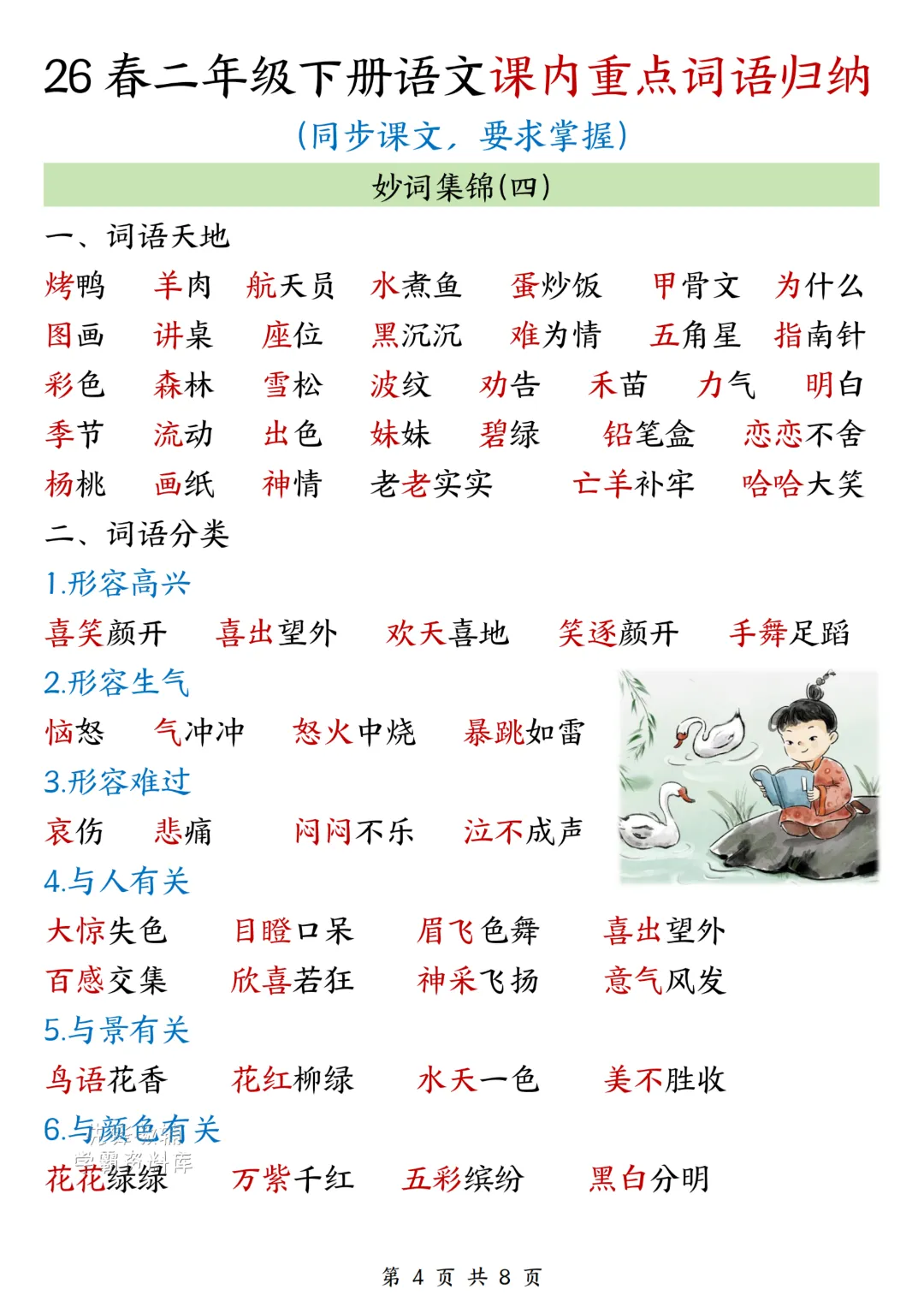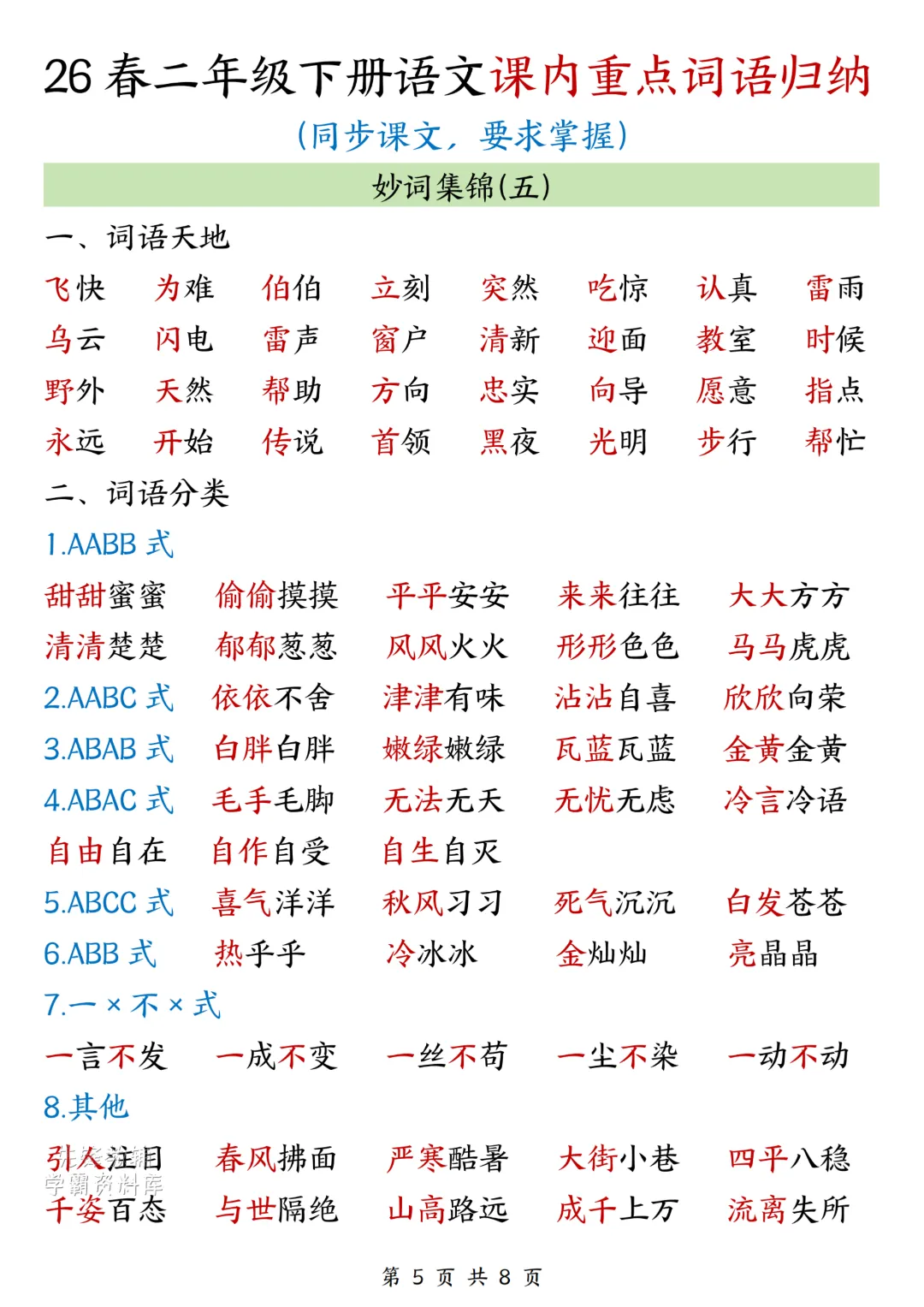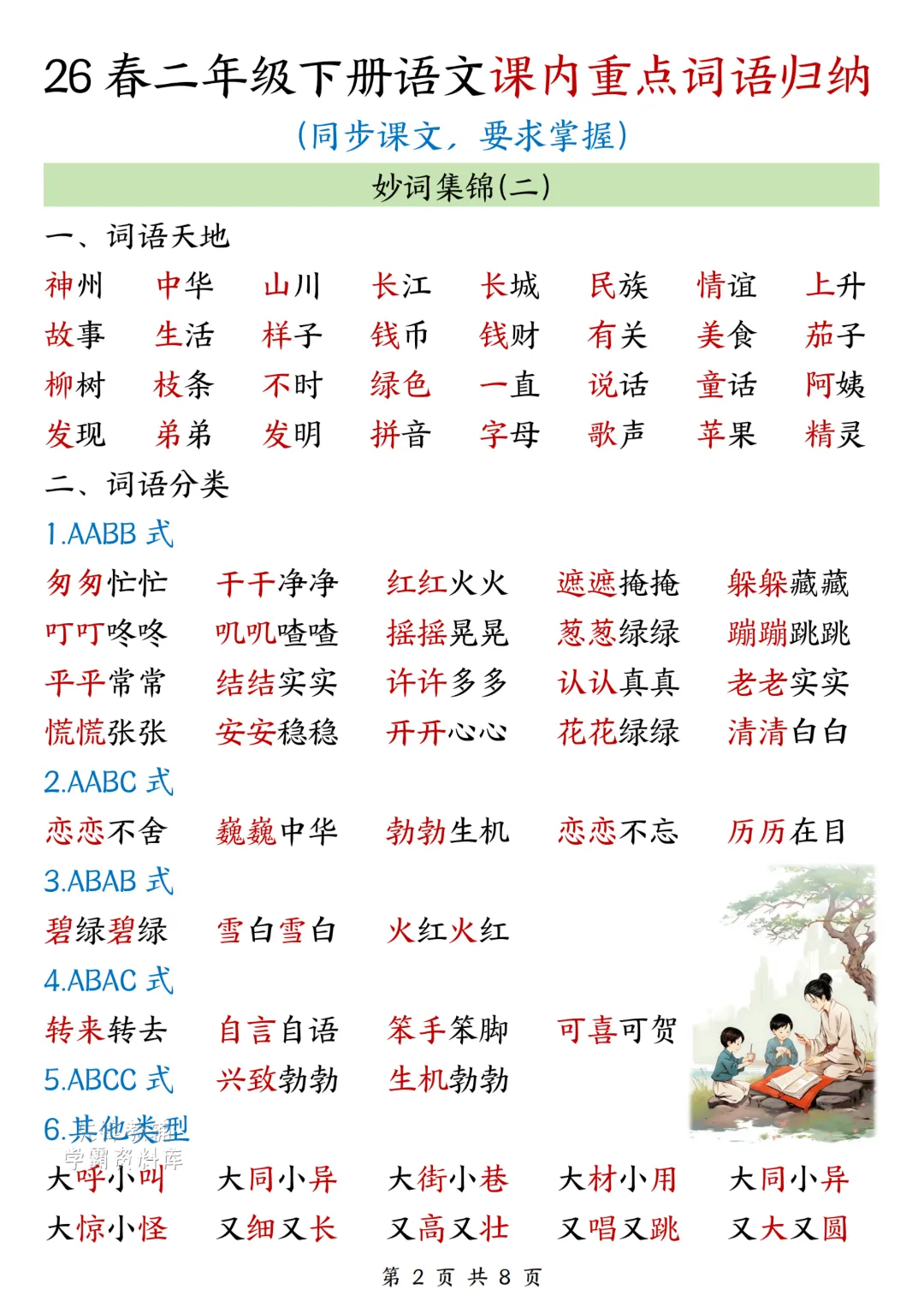 今日分享26新《二年级下册语文课内重点词语归纳》电子版可打印。这份资料精准解决二年级孩子语文基础不牢、家长辅导无重点的痛点,帮孩子吃透课内核心词语,稳拿基础分。分类清晰,好记好用。有需要的家可以领取打印,每天带孩子读一读、默一默,语文基础越打越牢!~