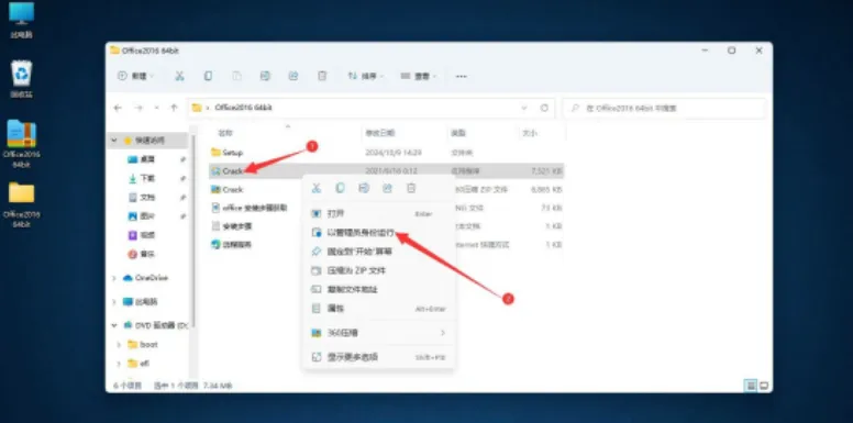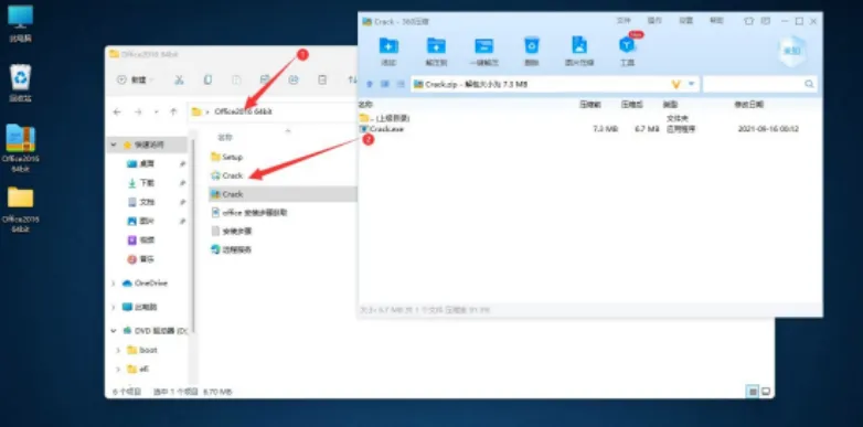 8.回到 Office2016 文件夹,把 Crack 压缩包文件解压出来!