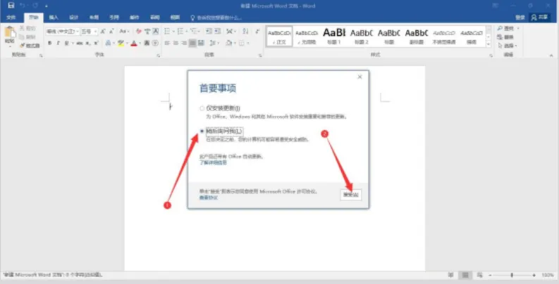 14.安装好默认是没有图标在桌面,可以通过右键-新建方式创建,小编创建一个 word 文档然后打开,点击稍后,然后点击接受!