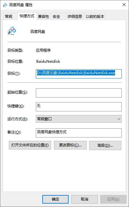 举个例子,我要双开百度网盘,复制的路径就是“D:\百度云盘\BaiduNetdisk\BaiduNetdisk.exe”,每个人的安装路径可能不一样,按照自己电脑上的来就好。