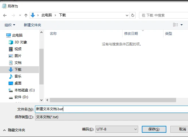 4.保存类型选择“文本文档(.txt)”,编码选择“UTF-8”,然后点击“保存”;