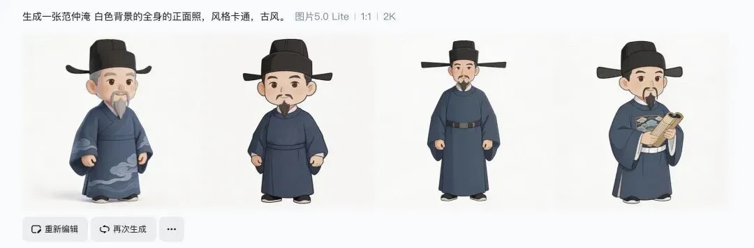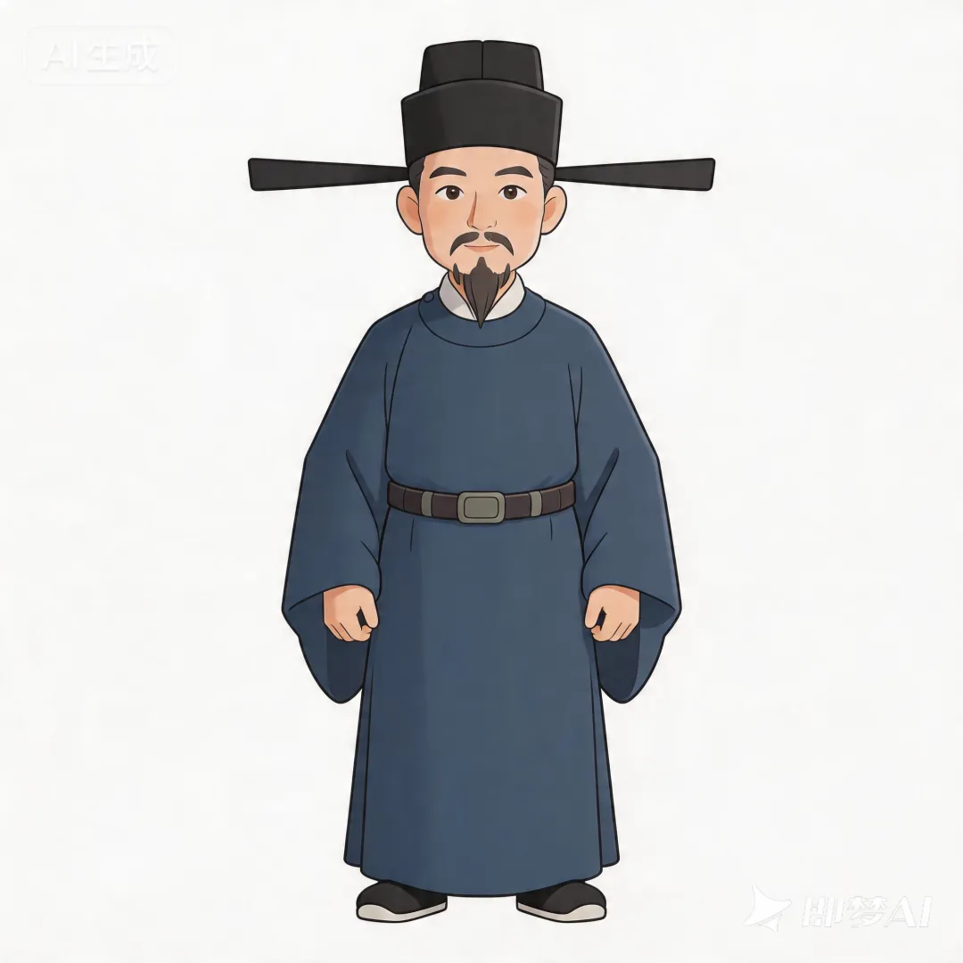 提示词:生成一张范仲淹 白色背景的全身的正面照,风格卡通,古风