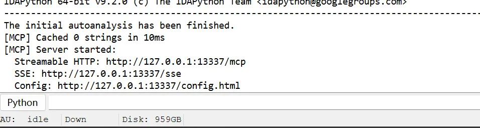 (***这个步骤连接了 MCP 与 IDA ,让 MCP 插件在本地启动服务,监听并接收 IDA 的上下文信息***)