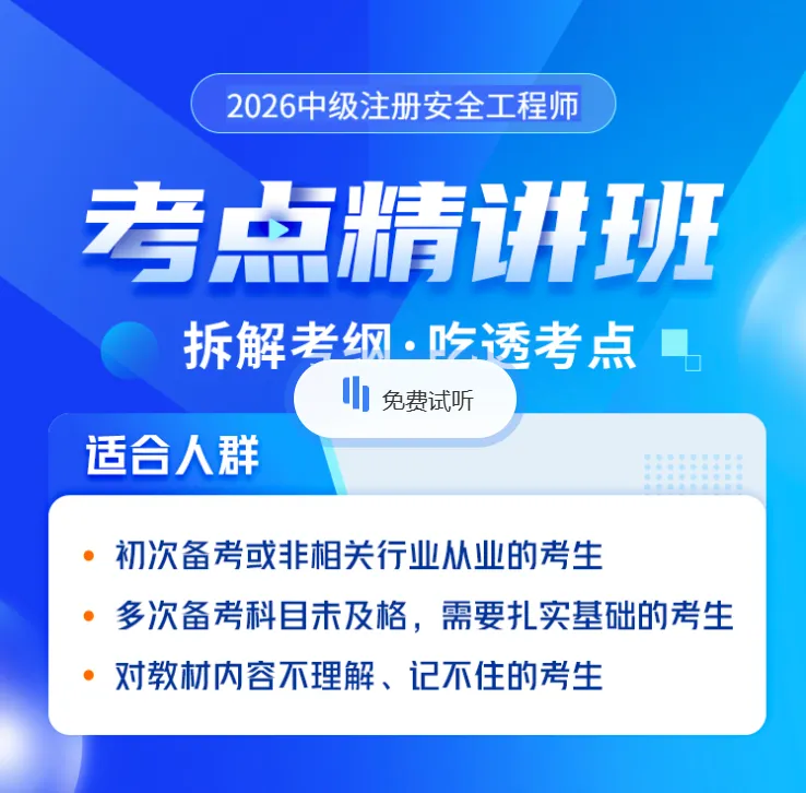 为了帮大家少走弯路、高效备考,我们还特别开放了2026 注安精讲班试听名额,限时开启!贴合目前的过渡阶段,不用纠结怎么学、学什么,老师帮你划好重点、排好计划,稳稳跟上备考节奏。