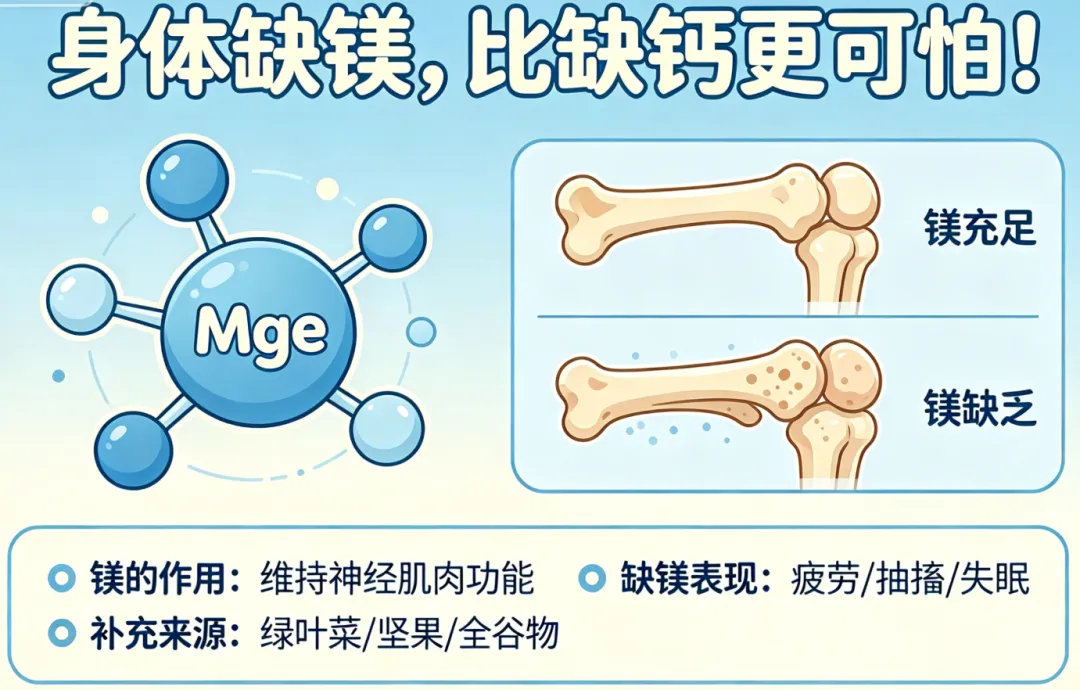 老张感慨:”原来缺镁这么可怕,我以前听都没听过!”