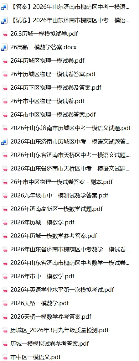 【免费下载】26年济南各区中考一模真题电子版!含答案解析,难题讲解!!