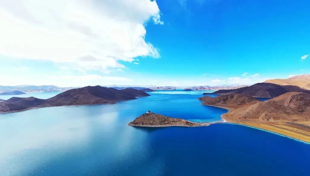 拉萨>羊卓雍措>羊湖藏装拍照>羊湖无人机航拍>拉萨