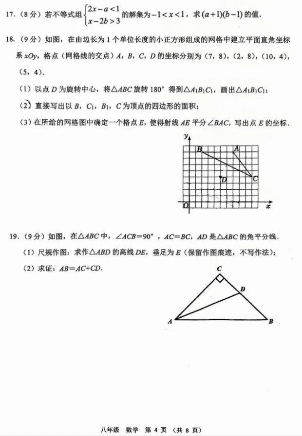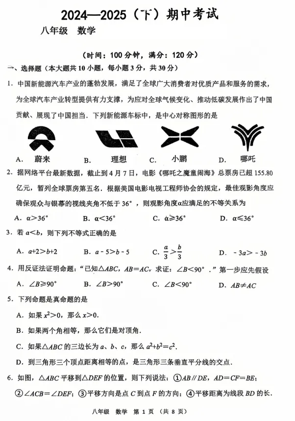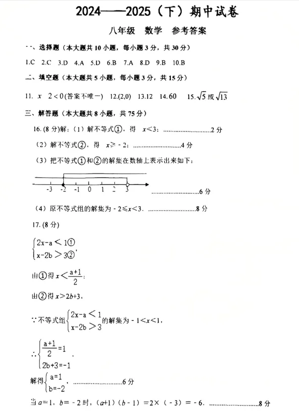 北师大版八年级下册数学《期中质量检测卷(含答案)》,完整电子版可打印