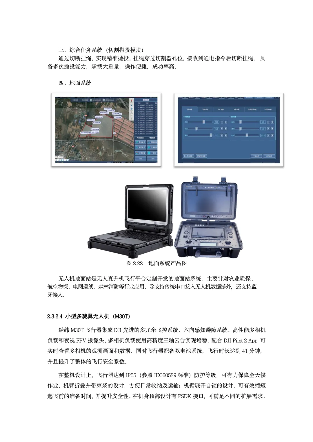 前端感知系统:由多型无人机飞行平台及配套任务载荷组成,可根据场景需求灵活配置可见光/红外光电吊舱、测绘相机、激光雷达、通信基站、抛投装置等设备。