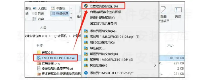 2.打开解压好的文件夹,找到下图中的安装文件右键以管理员身份运行。