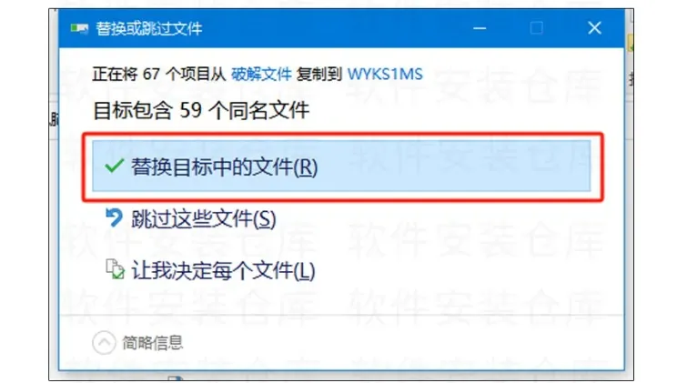 12.点击第一个,替换掉目标中的所有文件。