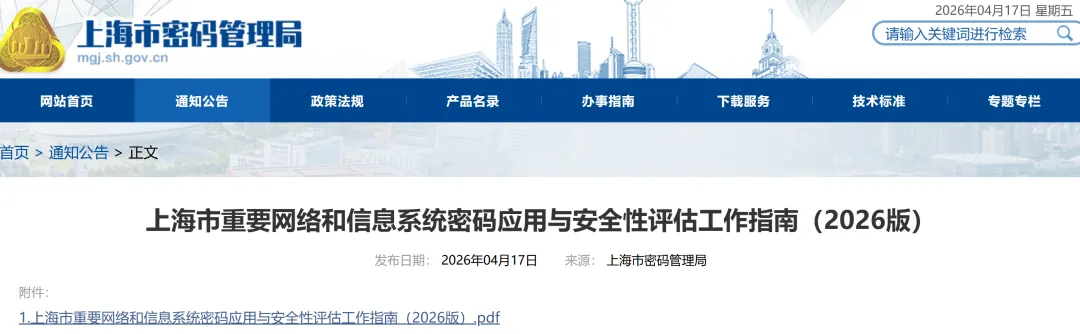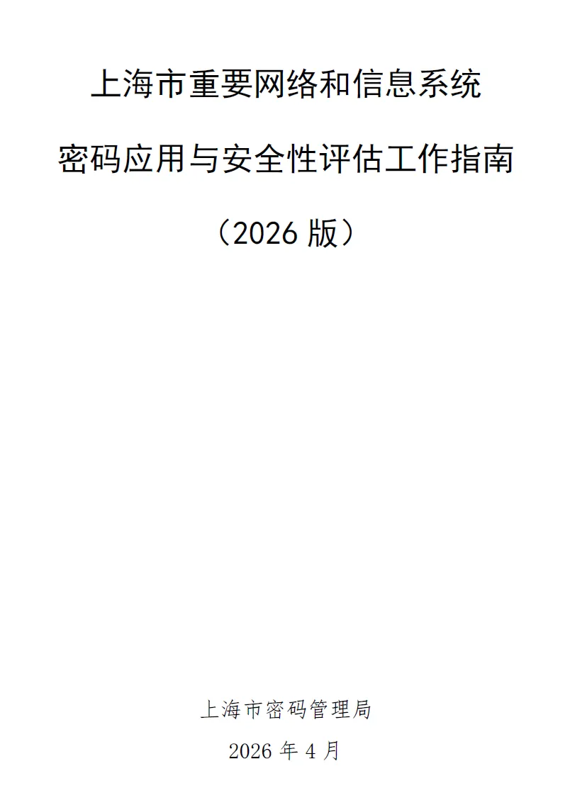 全文可下载|上海市重要网络和信息系统密码应用与安全性评估工作指南(2026版)