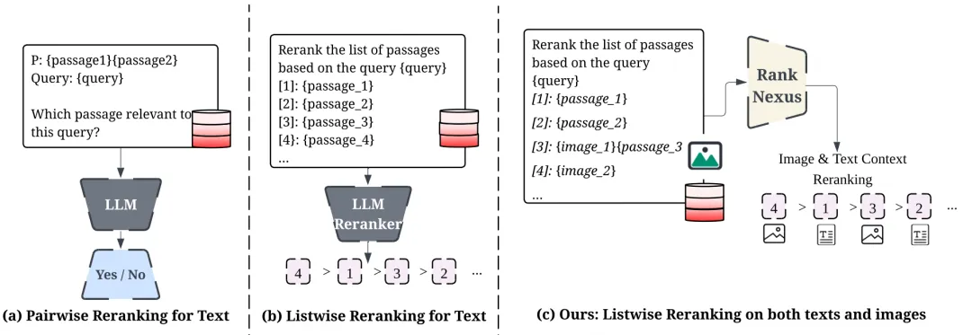 本文介绍的方法Rank-Nexus将Listwise重排序扩展至多模态场景,联合处理文本段落和图像,生成排序。