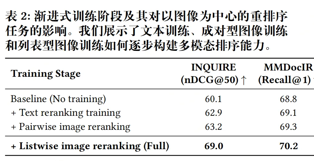 优化目标:混合模态列表级重排损失 (与文本损失形式一致,适配图文混合候选); -