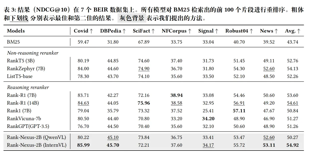 如上图,数据构造方面主要是蒸馏闭源模型和数据筛选策略:阶段1先从 Claude-4.5 中提炼多样多模态文档的成列表排序,生成包含相关性排序和解释的结构化输出。阶段2质量过滤通过 CLIP 得分阈值去除低置信度样本生成高质量的训练数据。